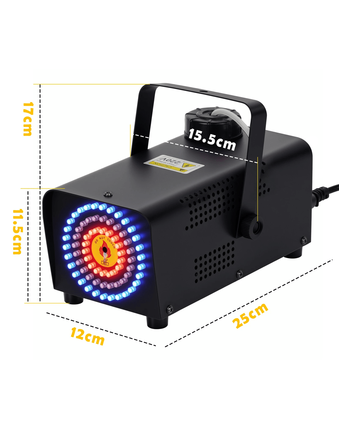 【12 Colors and 4 RGB LED Effects】The smoke machine is equipped with 72 LED lights with 12 different colors, four different lighting modes (fade, jump,flash, racing), enhancing the party effect and stage atmosphere, helping you create an unforgettable visual feast and illuminate every beautiful moment.
