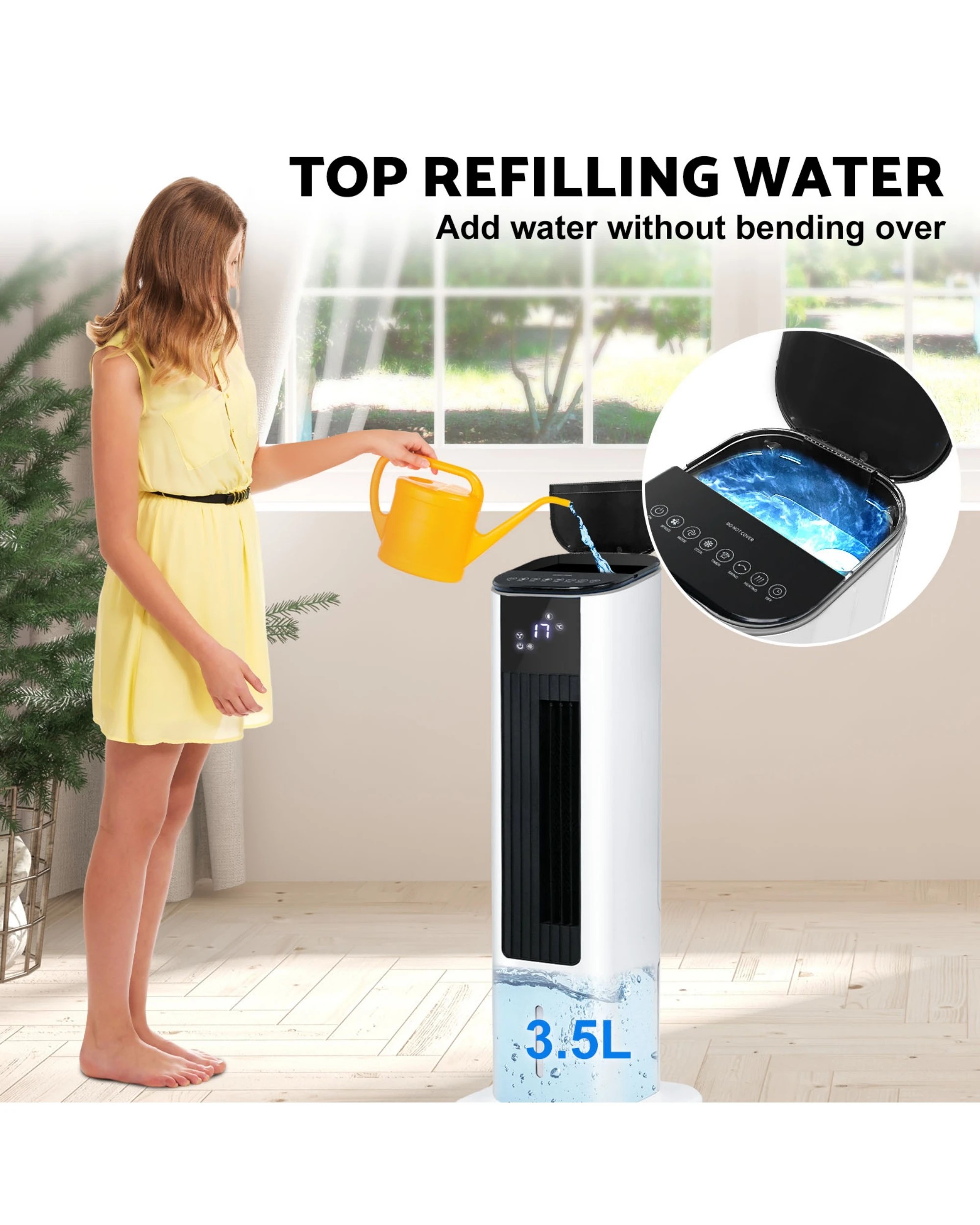 Advwin Air Cooler & Heater Fan, 4-in-1 Portable Oscillating Fan, With 3.5l Tank, Humidifier, 12h Timer For Home, Office