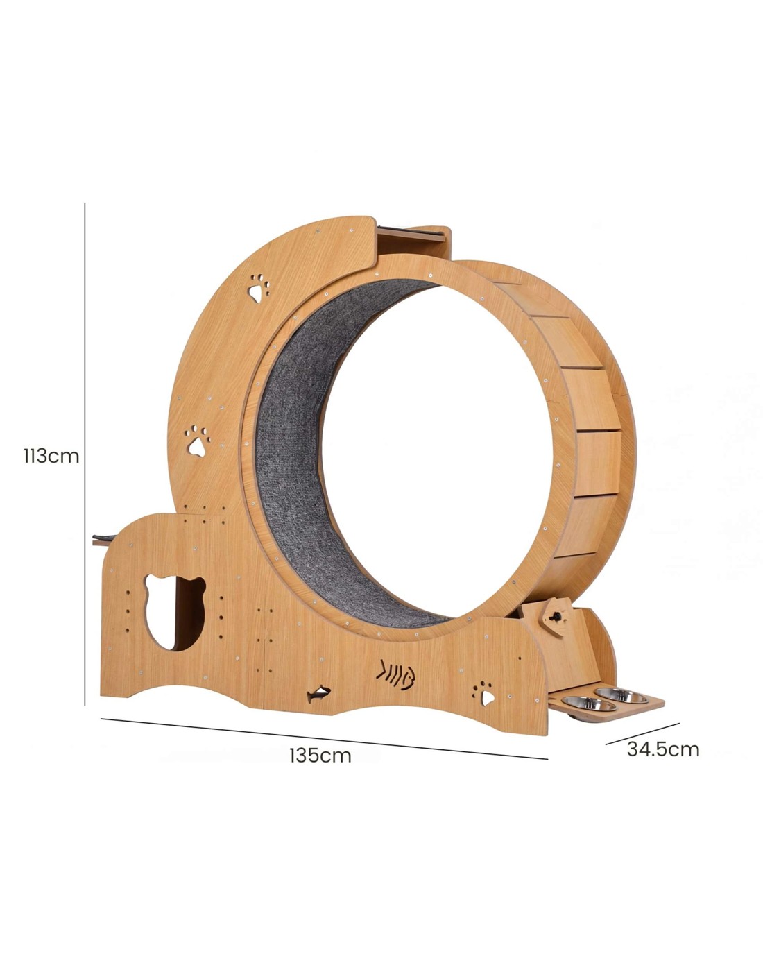 4-in-1 Activity Center: Combines a running wheel, two built-in bowls, a cat house, and resting pedals—saving space while covering all your cat's needs.
