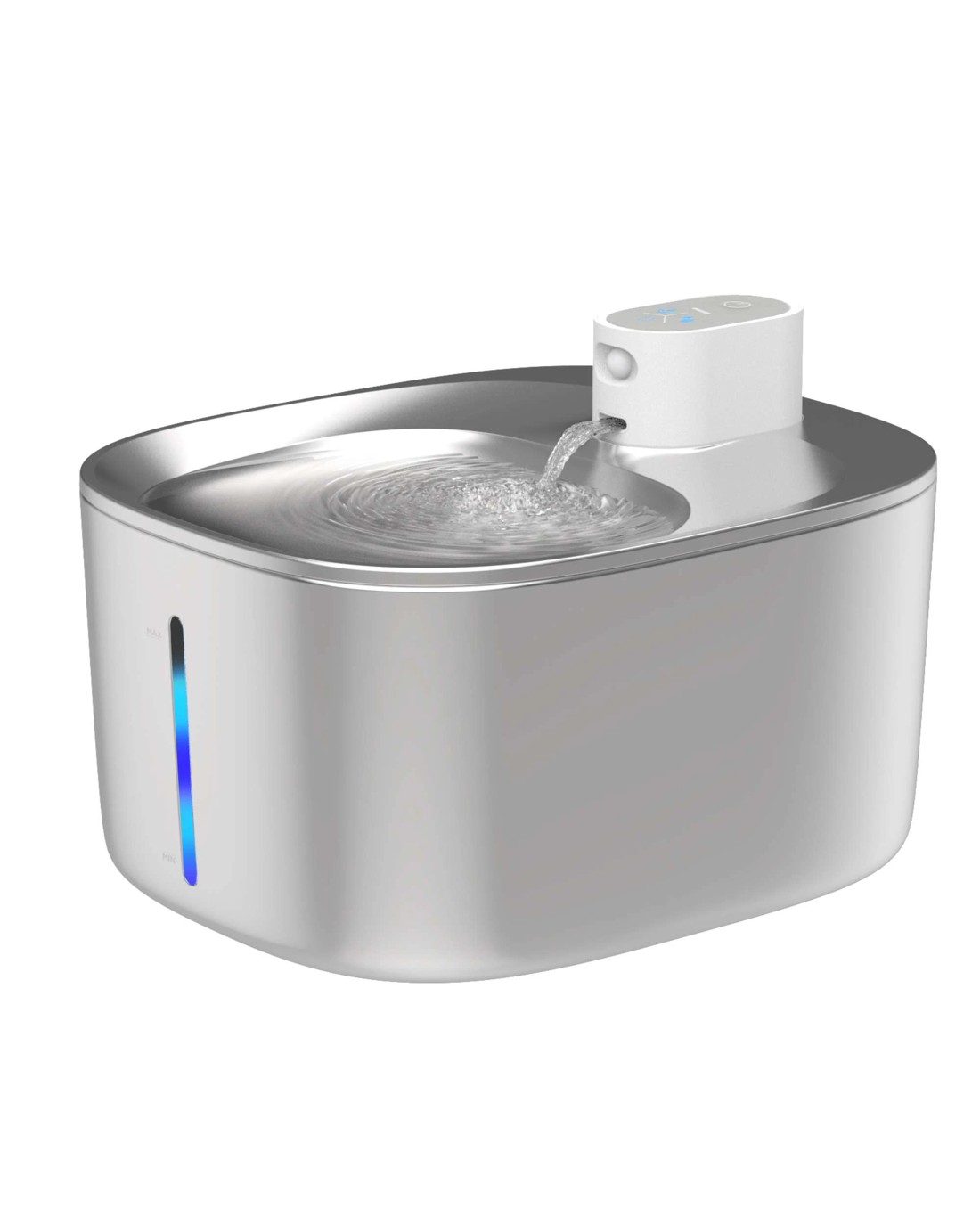 water. With the convenience of dual power modes (USB and internal battery) and three customizable water flow settings, it adapts perfectly to your pet’s preferences. Its quiet operation and easy-to-clean design make it the ideal hydration solution