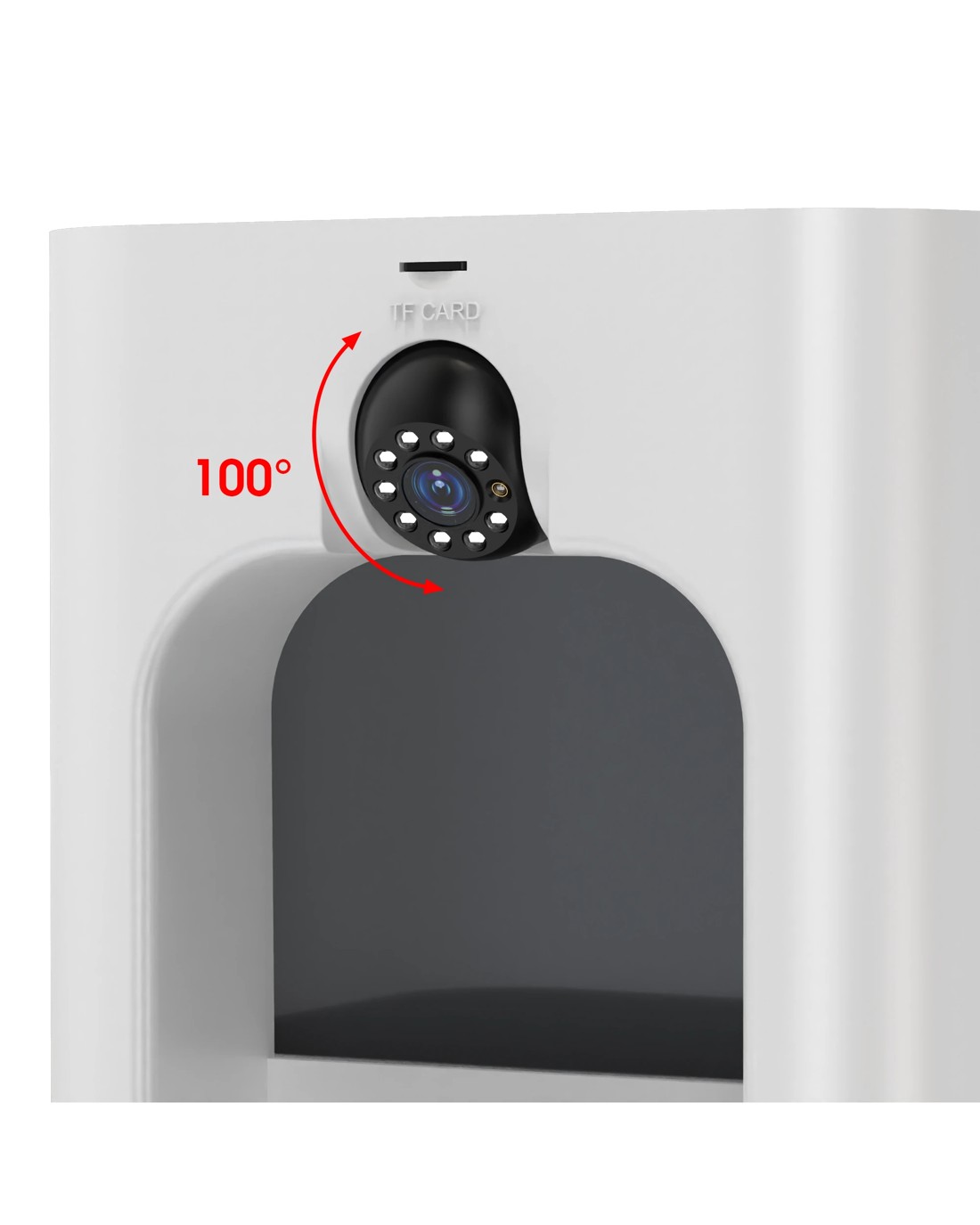 HD Camera with Night Vision: Watch your pet in 1080p clarity, day or night, with a 100° adjustable view.