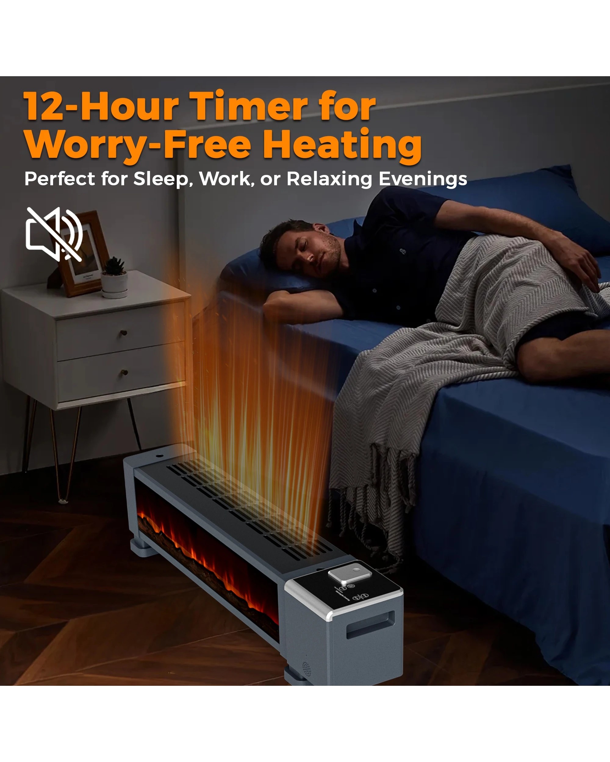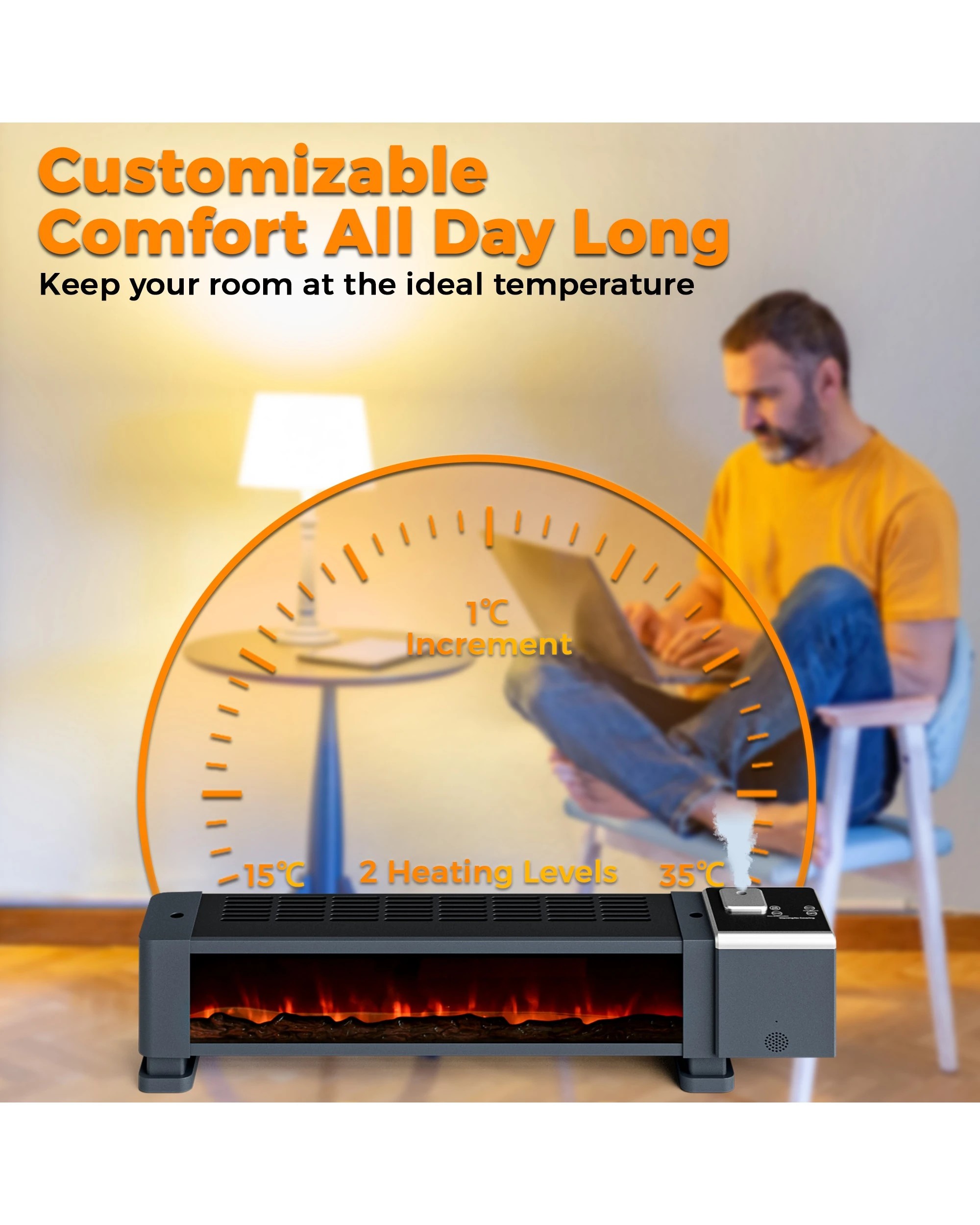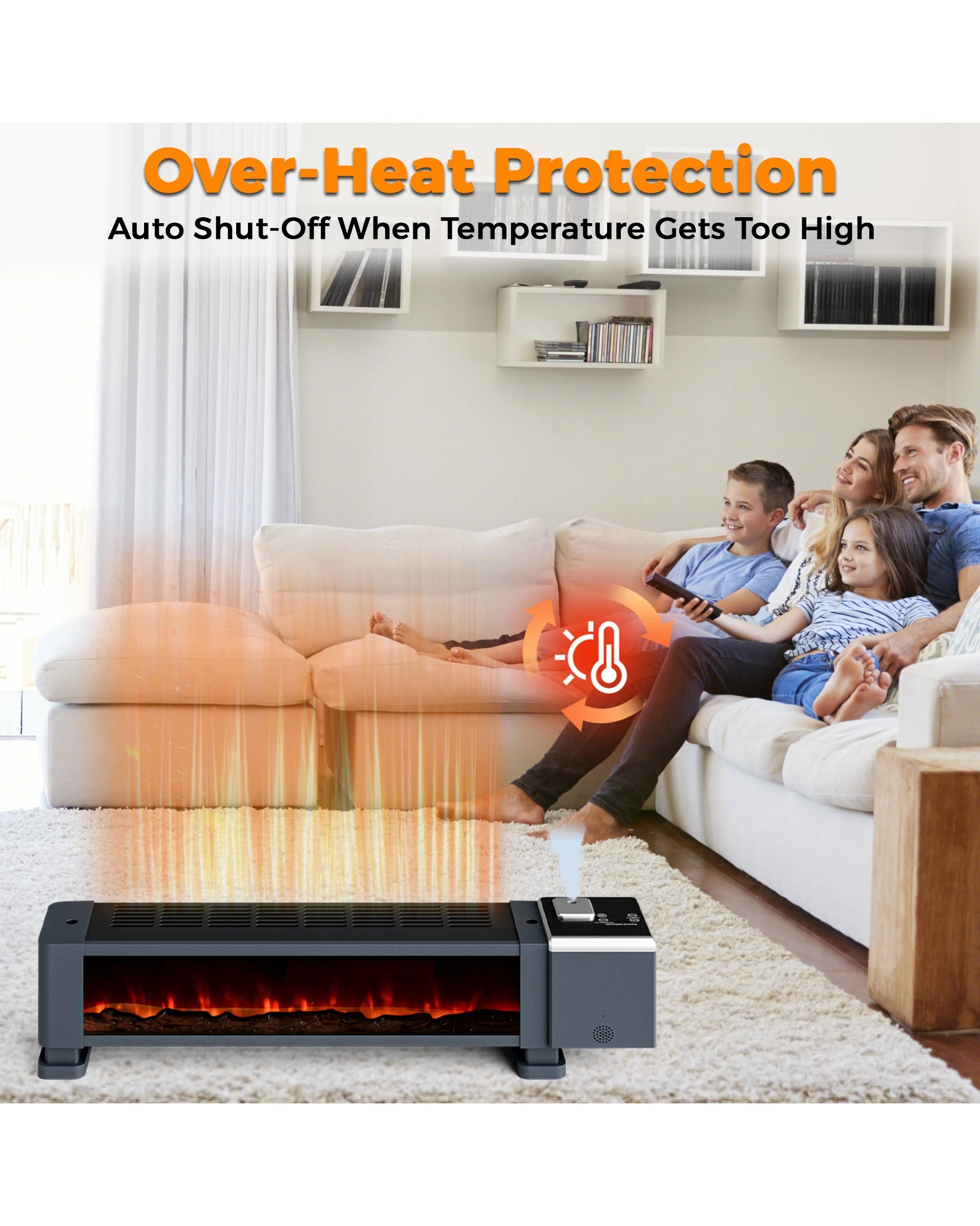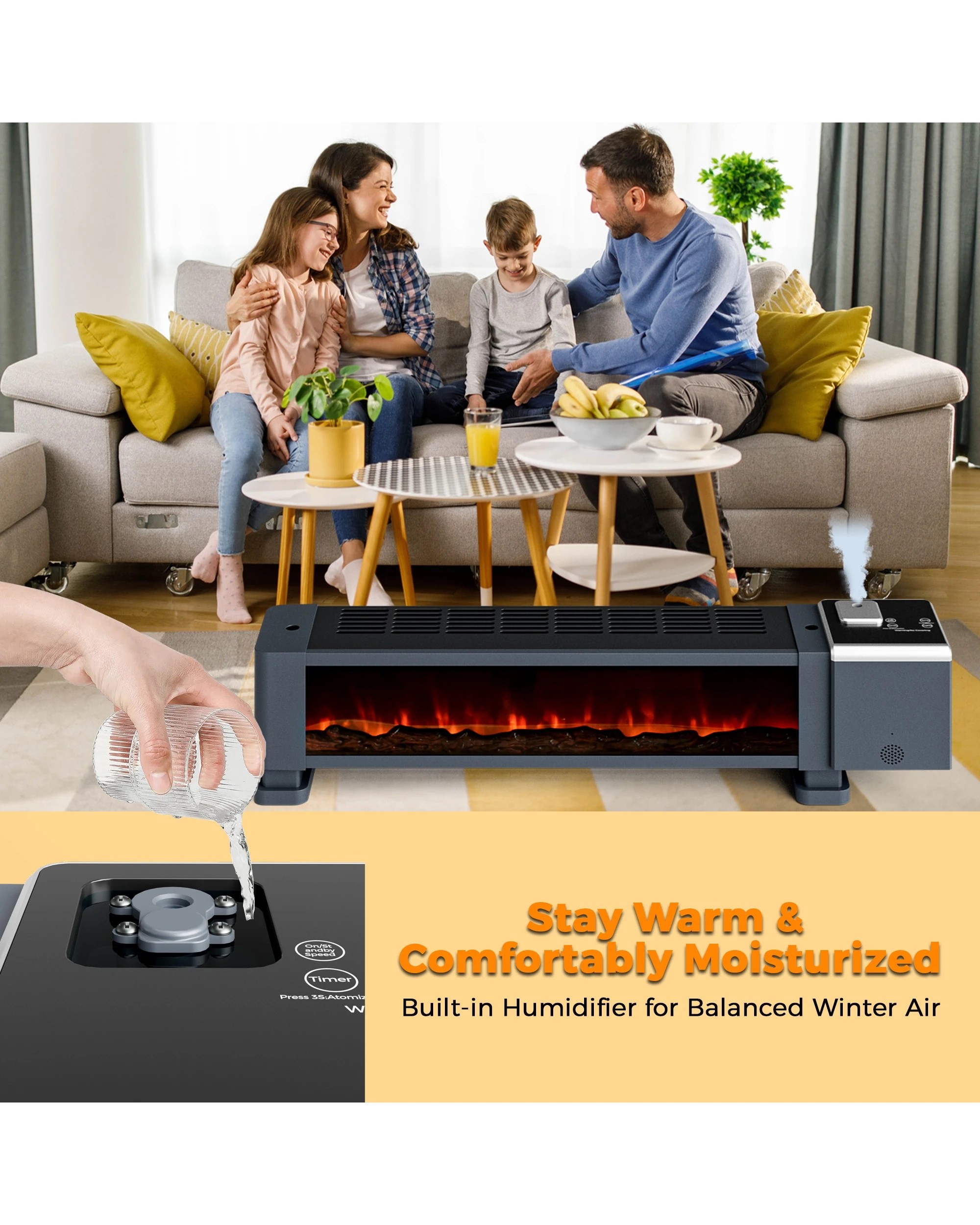 Advwin Baseboard Heater With 3d Flame 2200w Black - Black