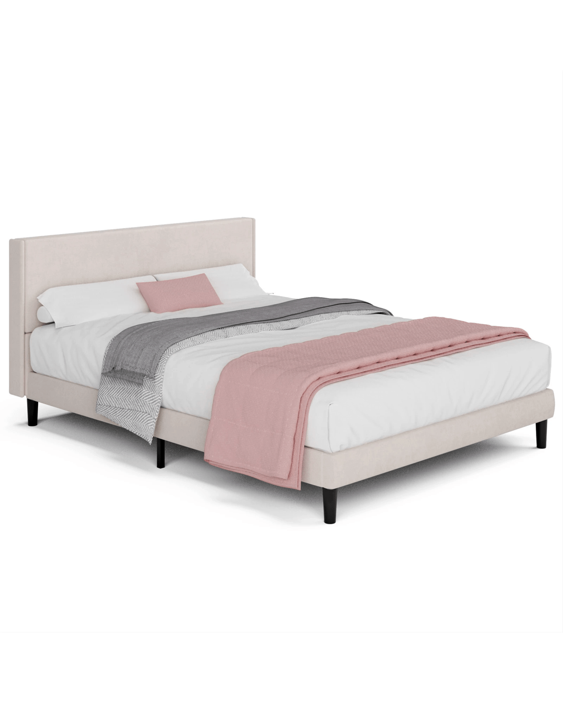 Sold by AdvwinAdvwin Bed Frame Double Size Mattress Base Upholstered Platform - Beige