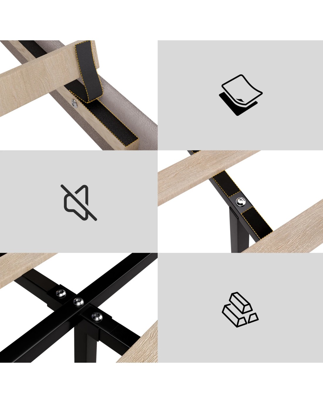 Noise Free and No Slip: EVA noise tampon is added between the slats to effectively prevent noise and slipping. The support legs are equipped with a plastic gasket to protect the floor. This bed frame ensures that you won't be woken up by sudden squeaking sounds throughout the night.
