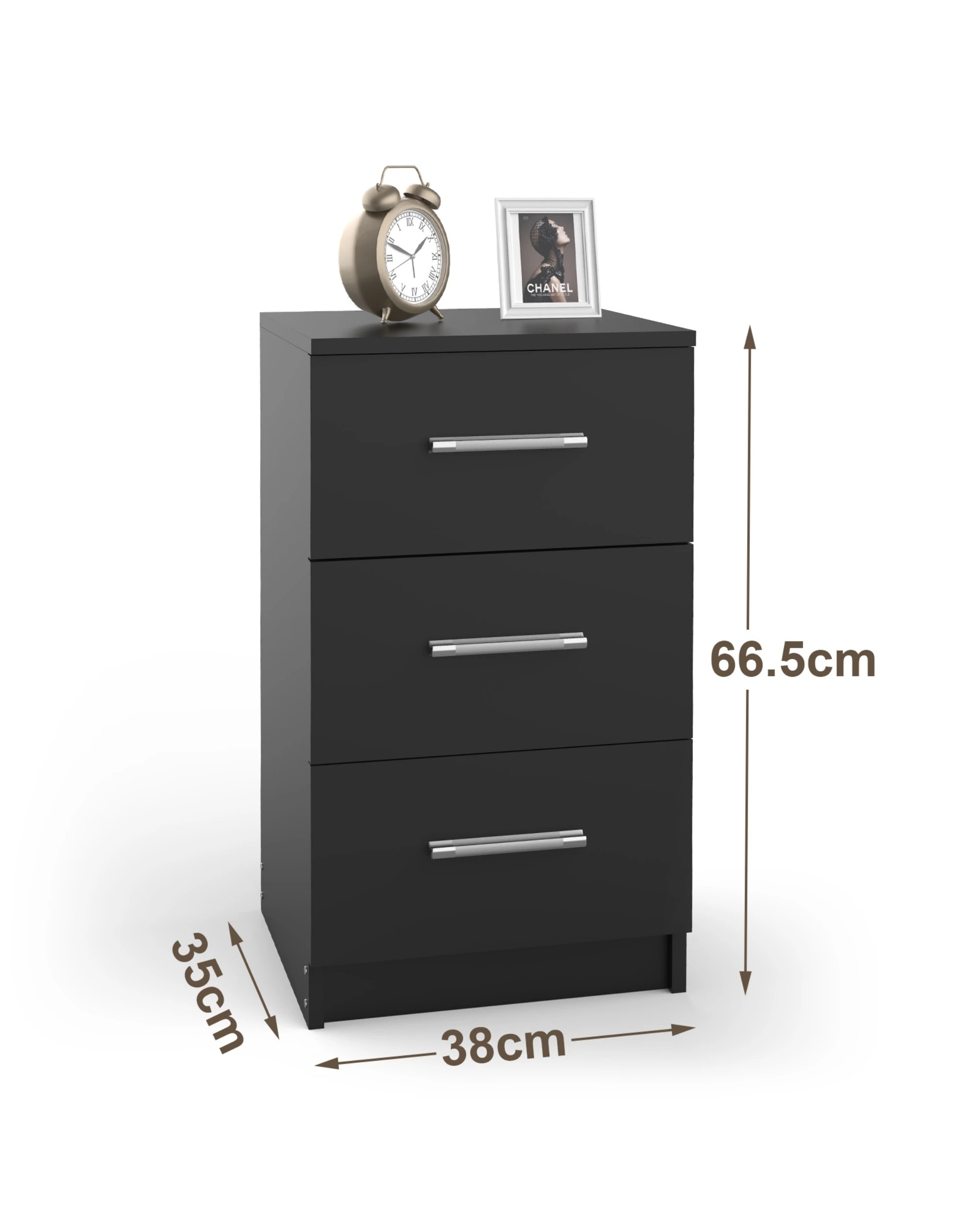 Advwin Bedside Table 3 Drawers 66cm Height Nightstand Storage Cabinet - Black