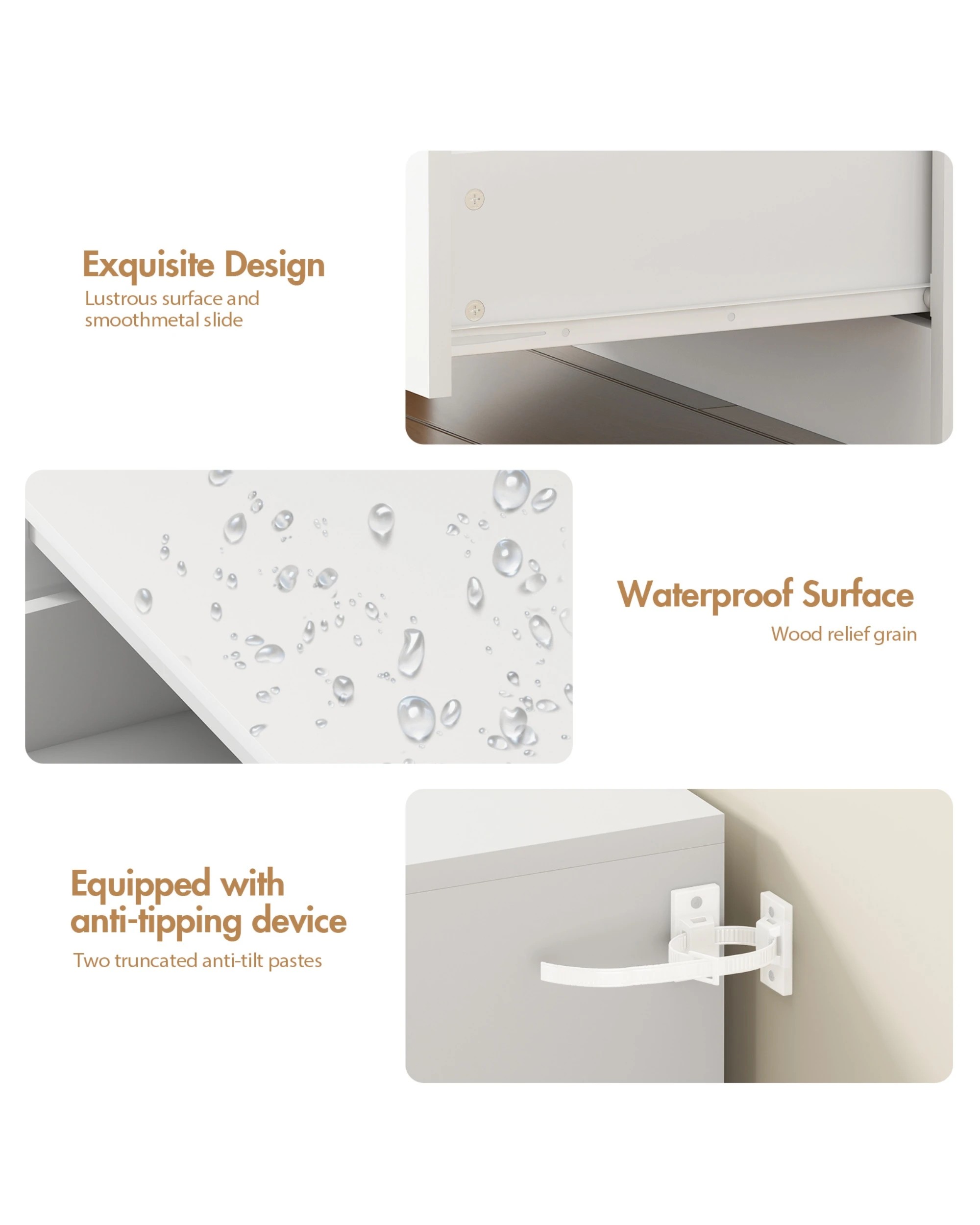 Advwin Bedside Table 3 Drawers 77cm Height Nightstand Storage Cabinet Dresser - White