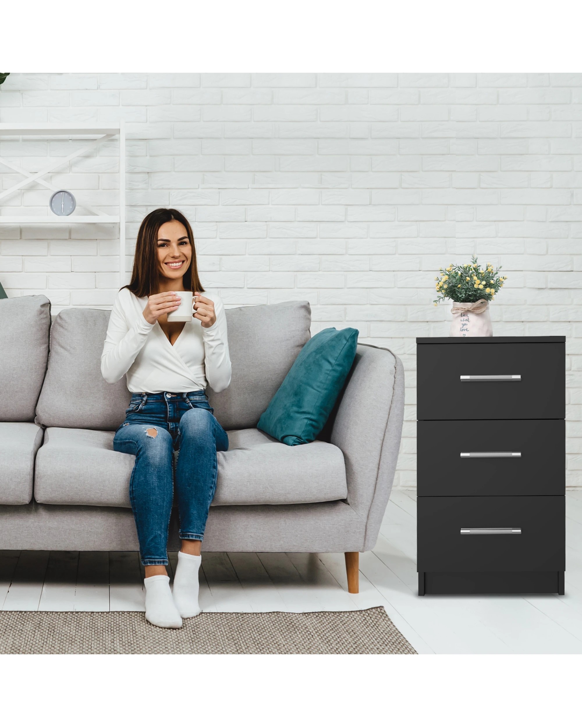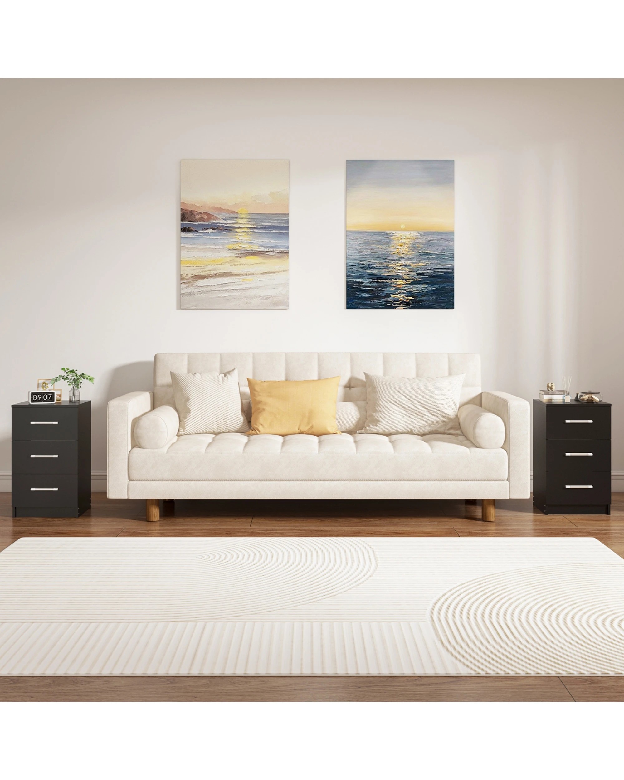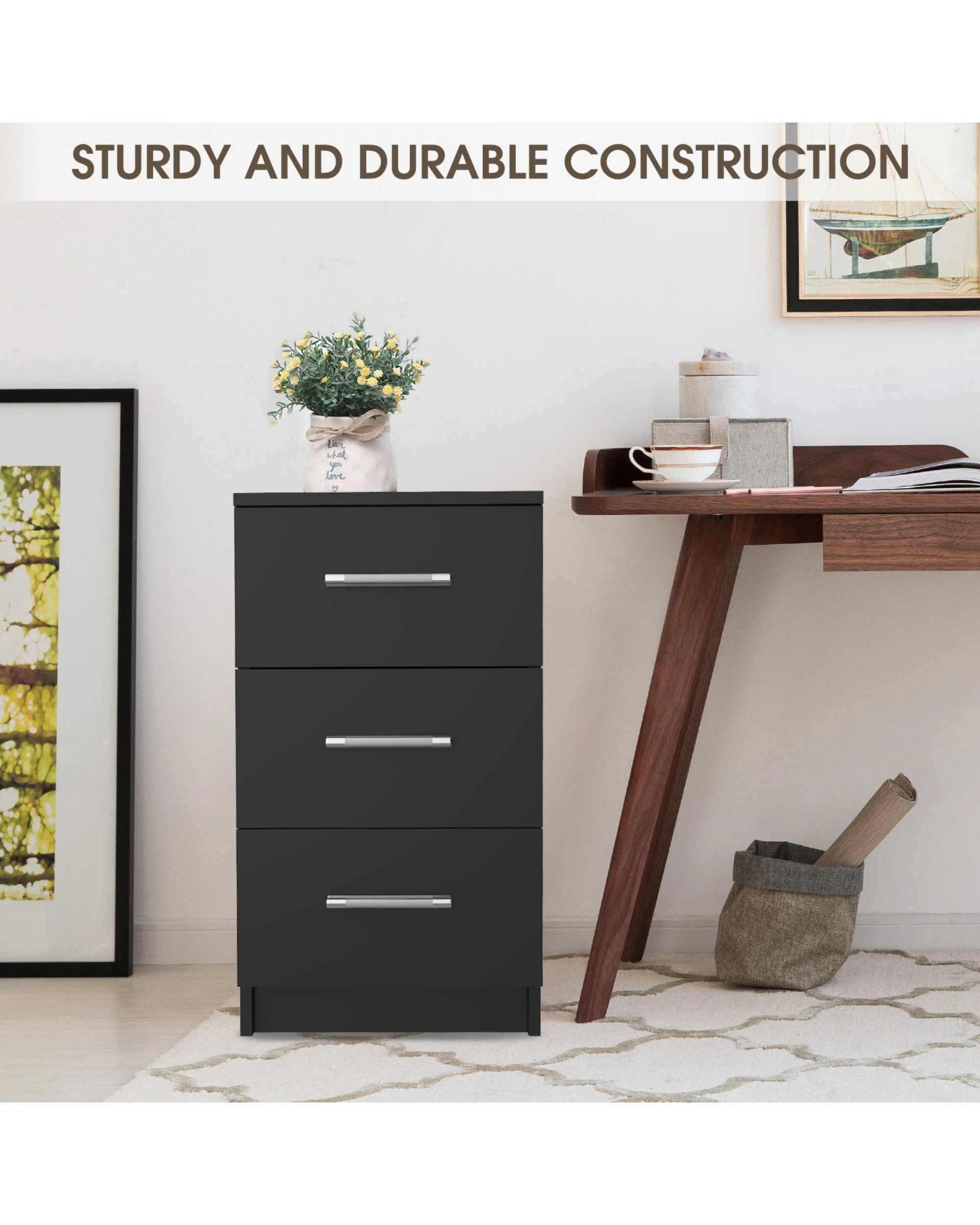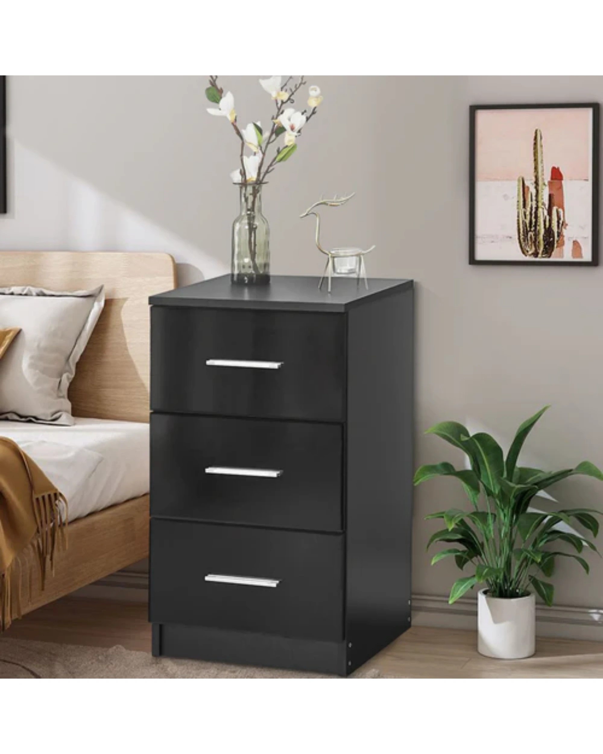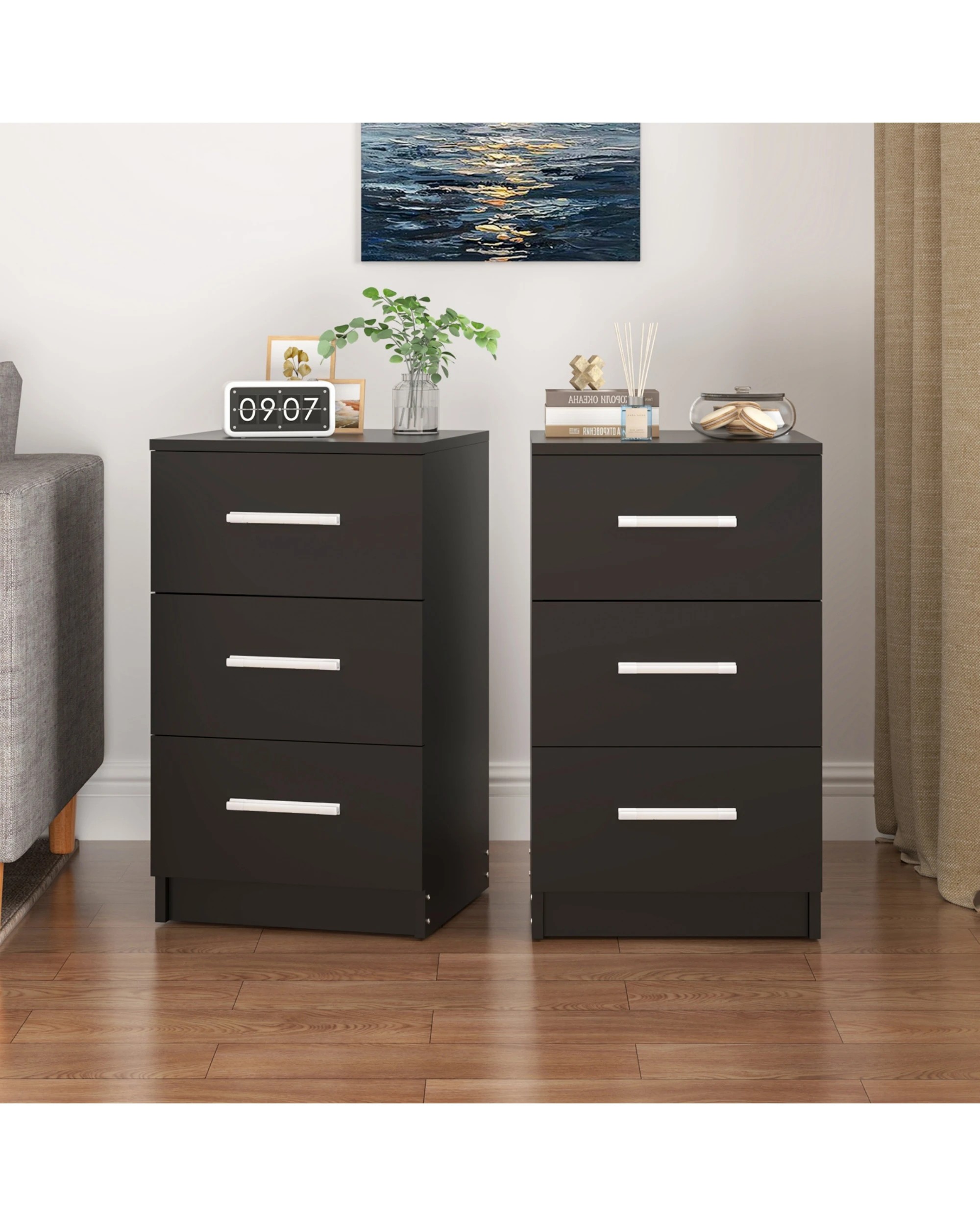 Advwin Bedside Table 66cm Set Of 2 - Black