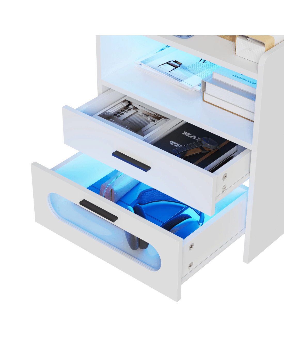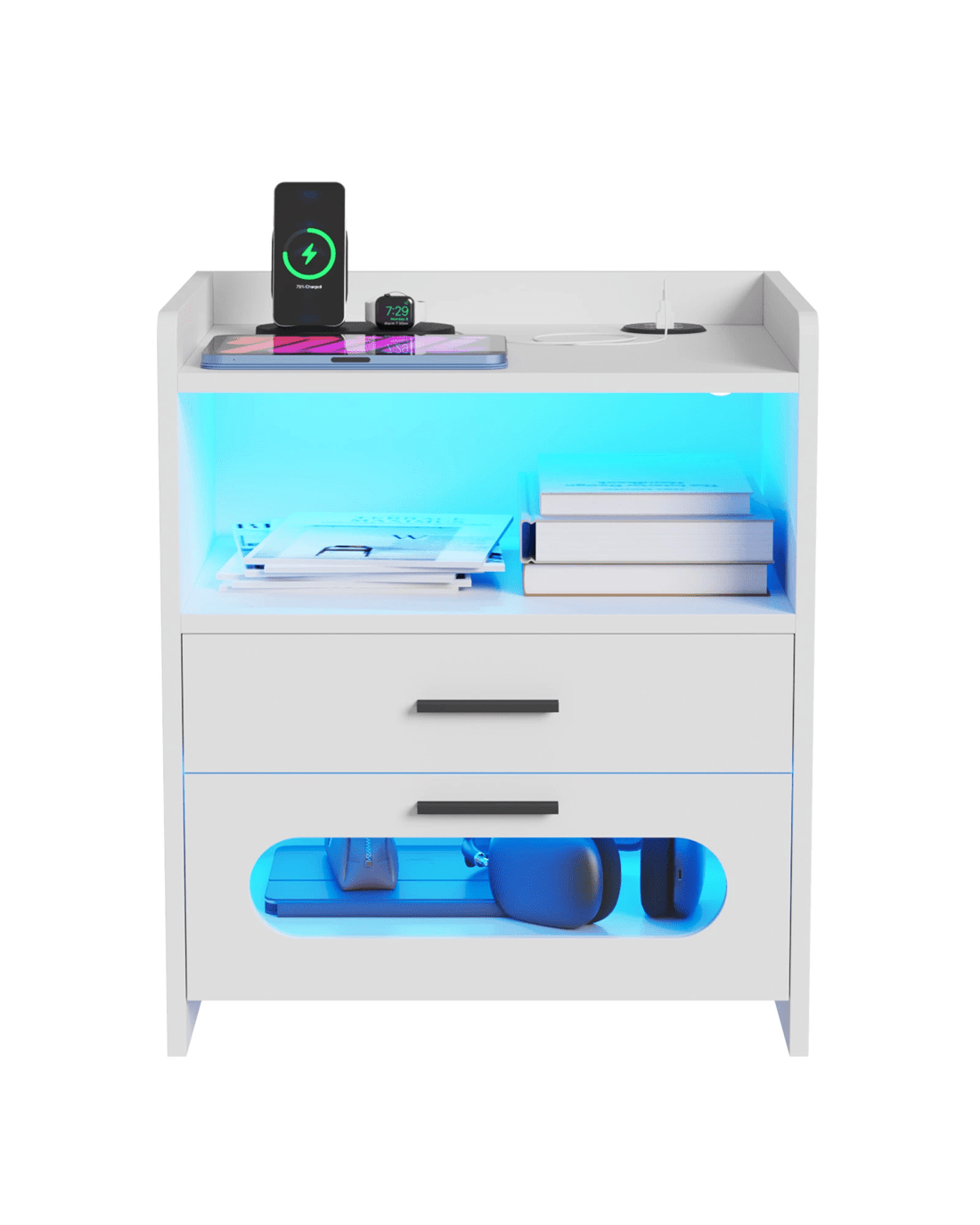 Sold by AdvwinAdvwin Bedside Table Wireless Charging Station Led Lights 2 Drawers Storage - White
