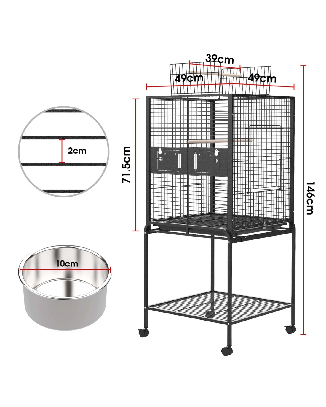 Easy Mobility with Locking Wheels: Features 4 smooth 360° swivel casters, including 2 locking wheels, allowing you to move the cage effortlessly and secure it in place.