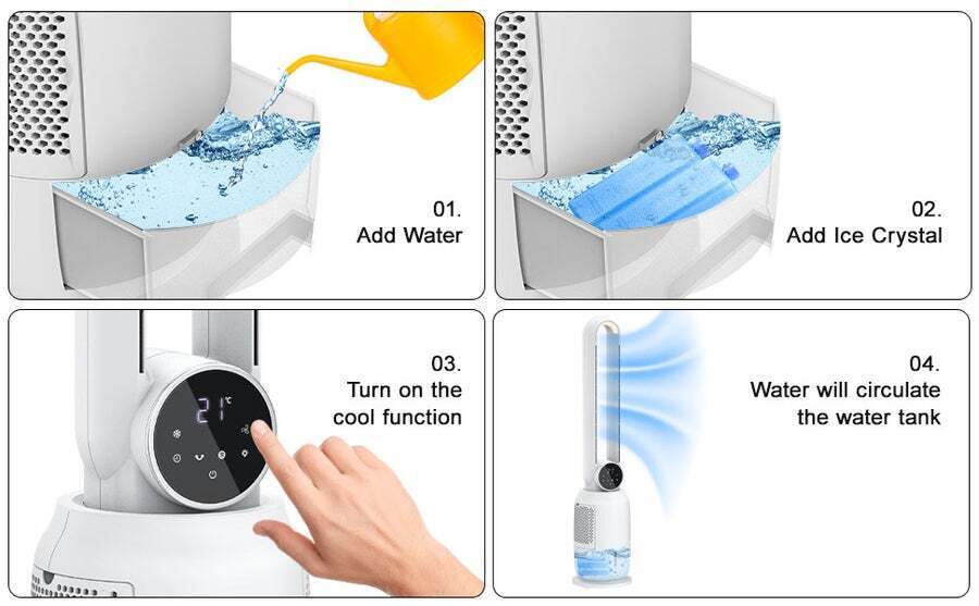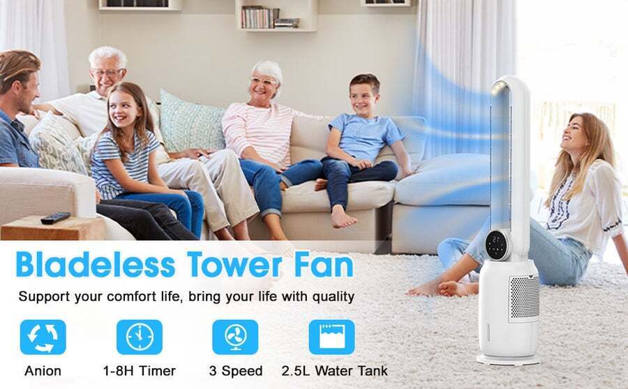 Advwin Bladeless Fan, 2.5l Evaporative Air Cooler With 3 Speeds, Remote Control, Night Light, Electric Purifying Fan