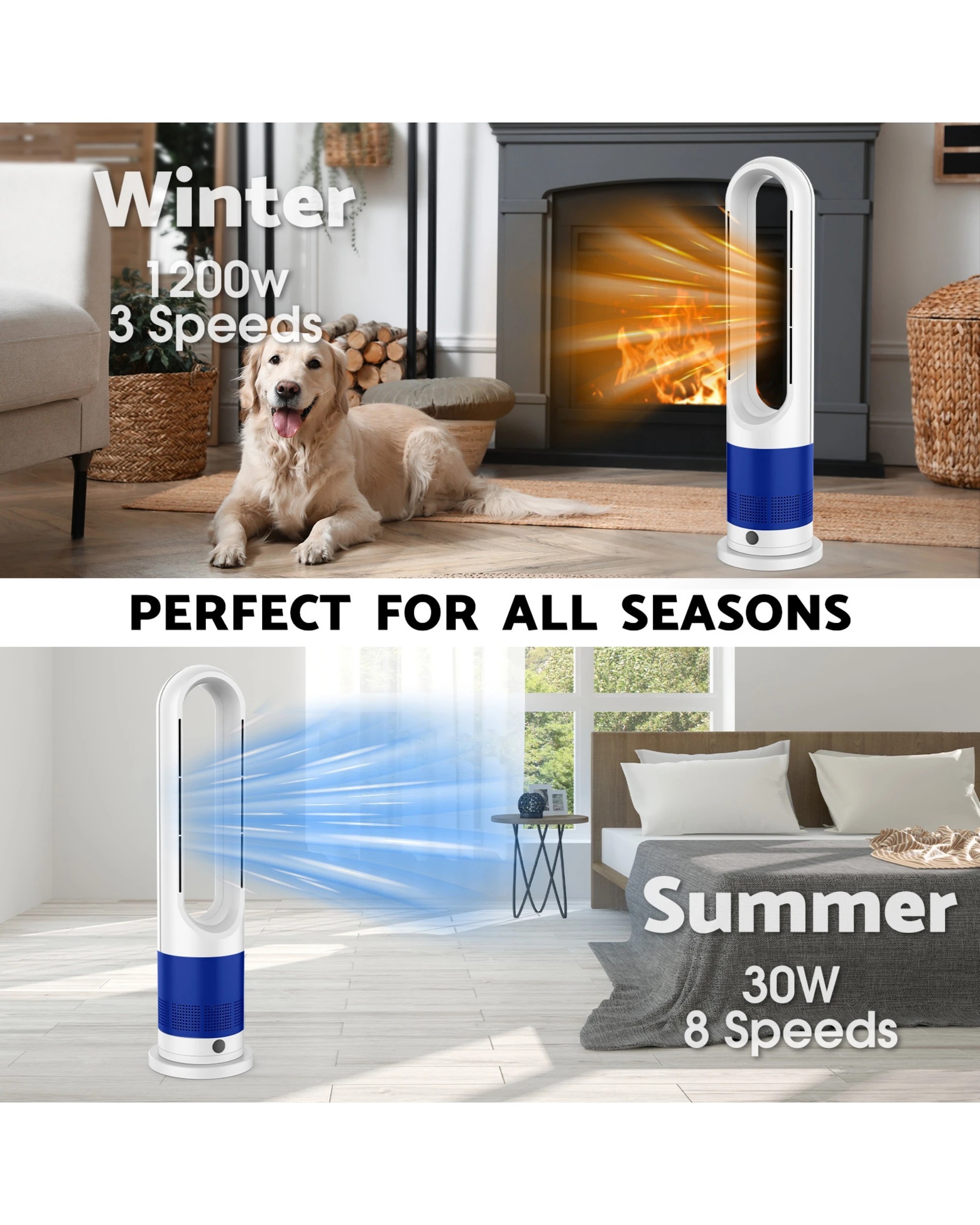 Advwin Bladeless Tower Fan, 2 In 1 Electric Fan Heater With 8 Speeds, for Room Bedroom Office Use