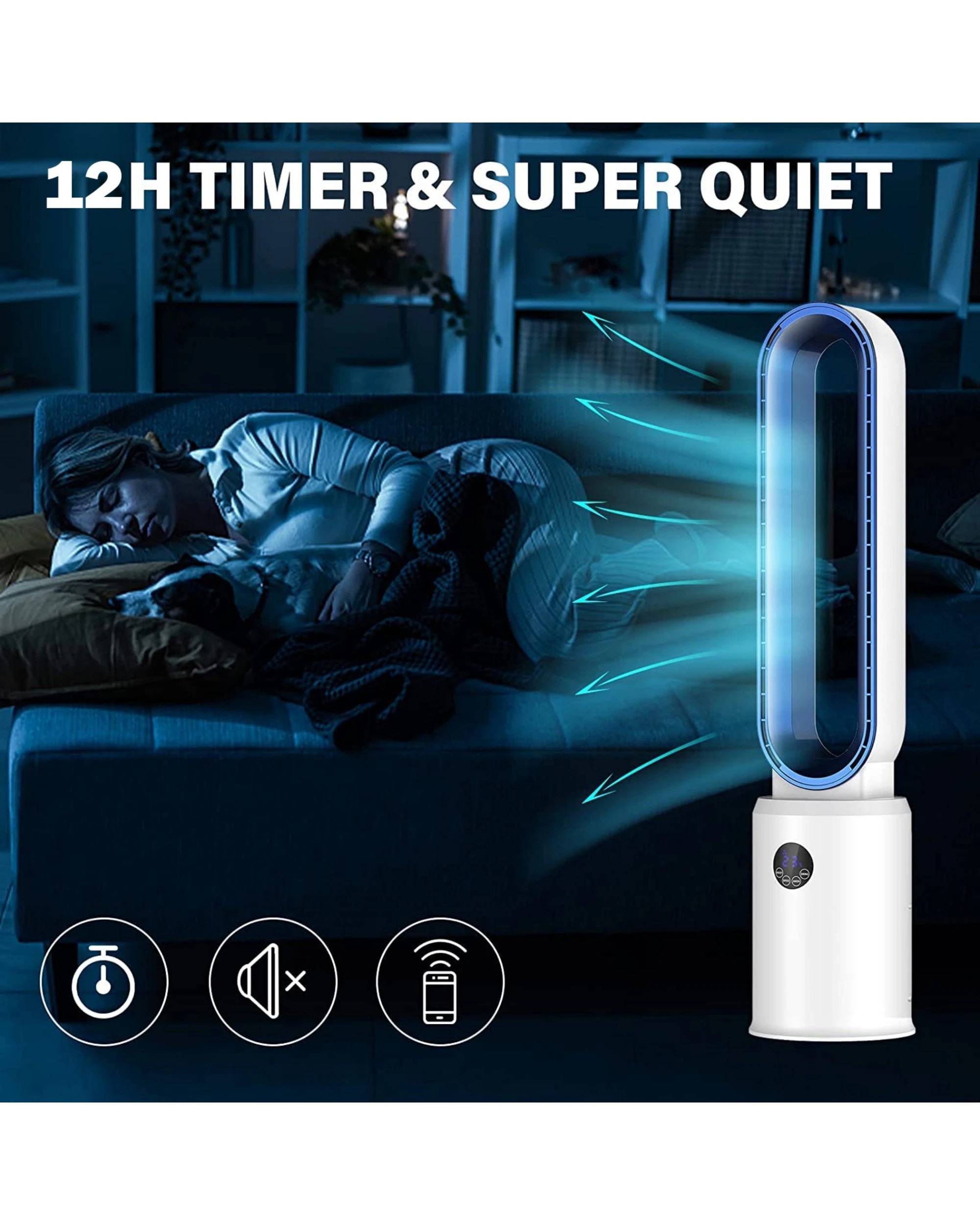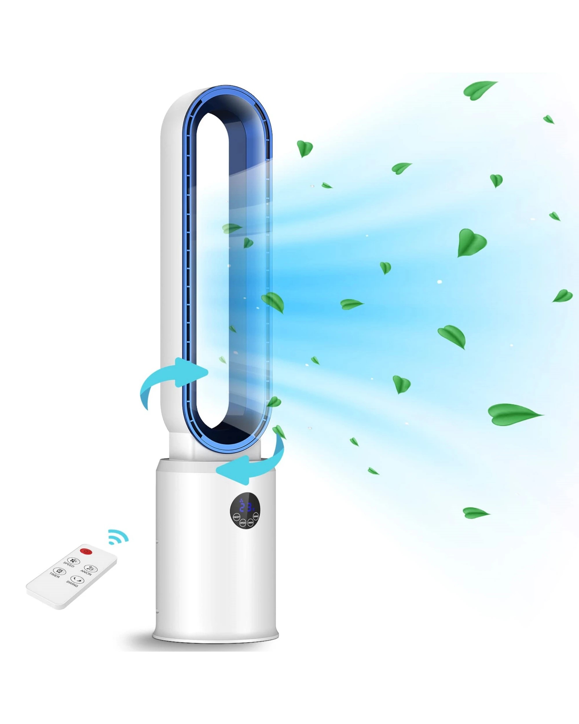 Advwin Bladeless Tower Fan, Standing Floor Fan Air Circulator with Remote Control Speeds Adjustable, Blue