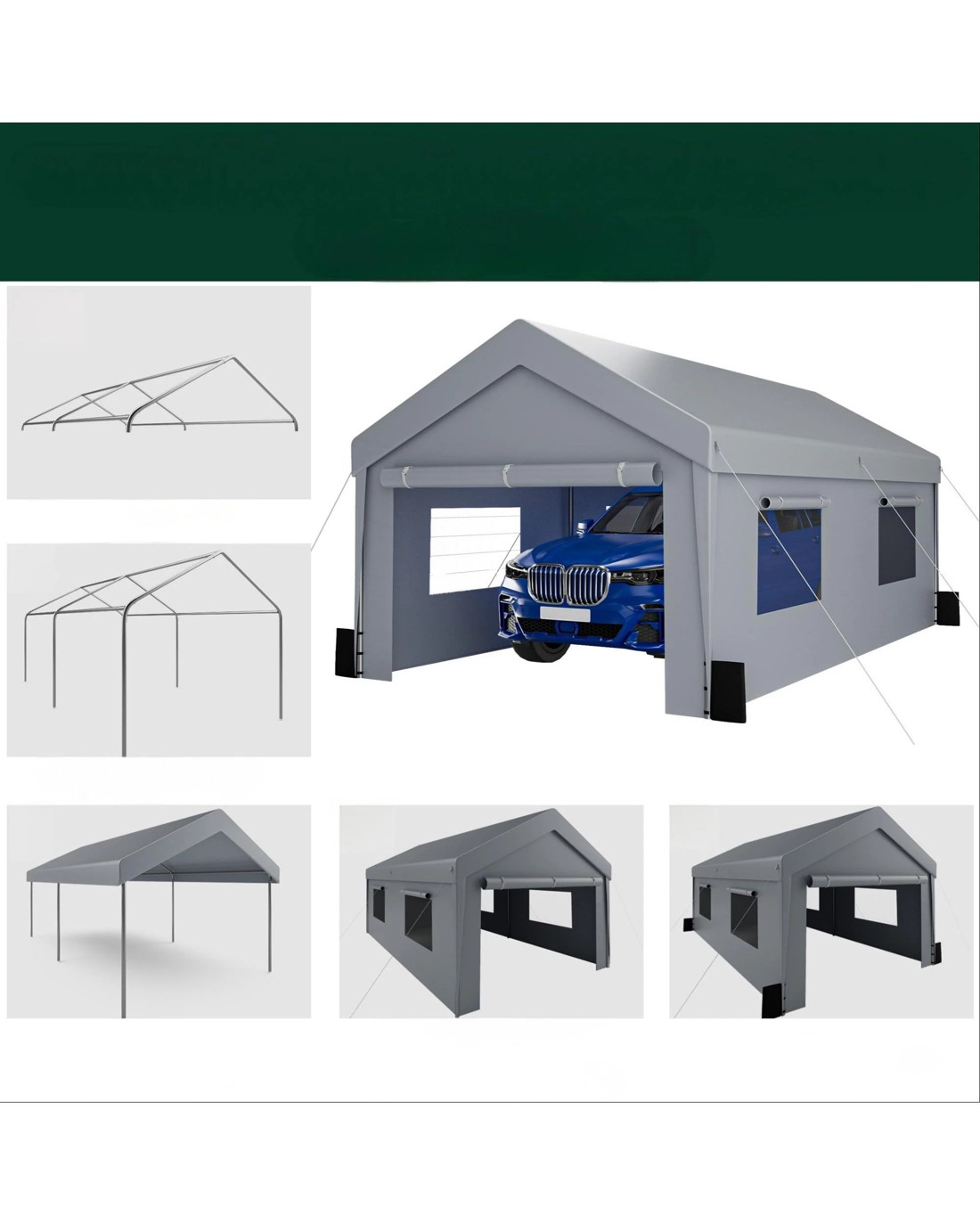 Advwin Carport 3x6m Outdoor Portable Garage with Removable and Roll-up Sidewalls/Doors - Grey