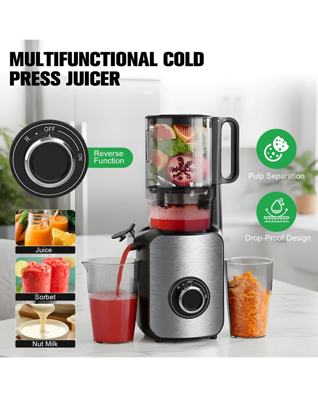 Want to enjoy fresh juice every morning without all the chopping, noise, and cleanup hassle? This cold press juicer is made just for you. With a 120mm wide feed chute, it takes whole apples, oranges, cucumbers—almost anything you love—straight in, so you can skip the prep and get straight to juicing.