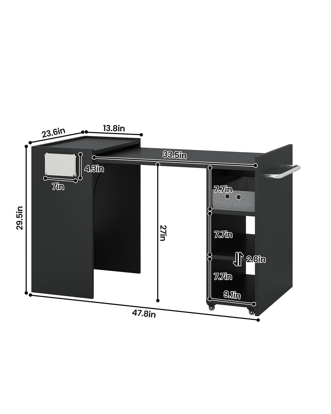 • 1 movable shelf is convenient to adjust the height according to different sewing machine specifications (3 positions adjustable).