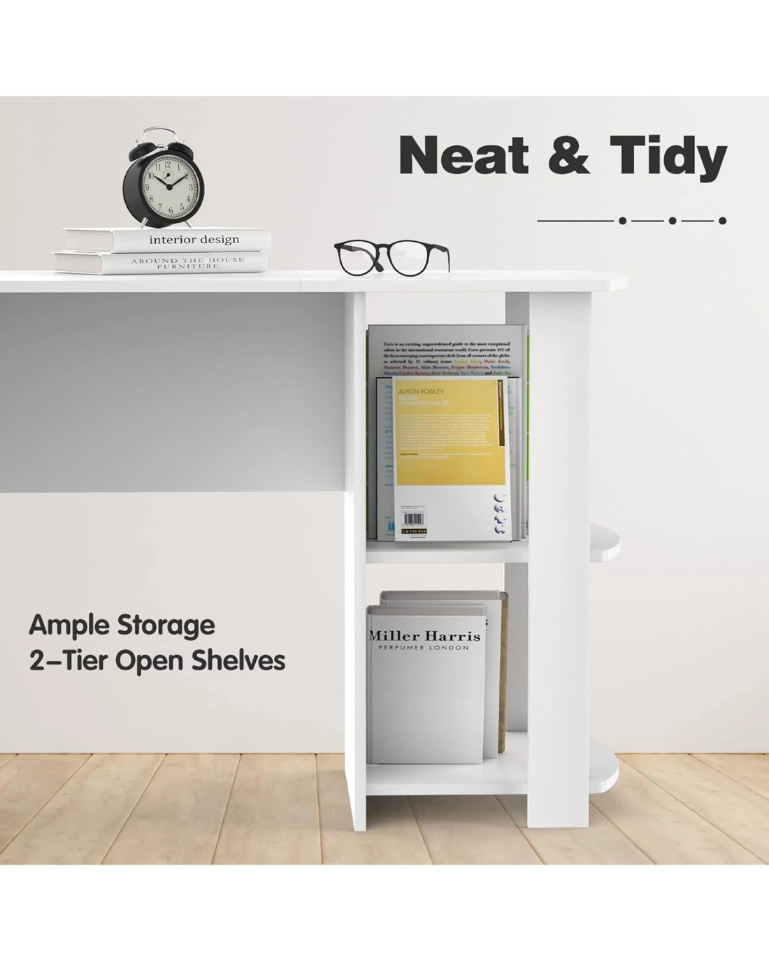 Advwin Corner table with ample storage space from the open shelves, the desk enables all your working essentials to be close at hand. Better still, the desk also comes with a cable grommet to enable any cabling to be neatly streamlined under the desk and free the desk of any mess.L-shaped