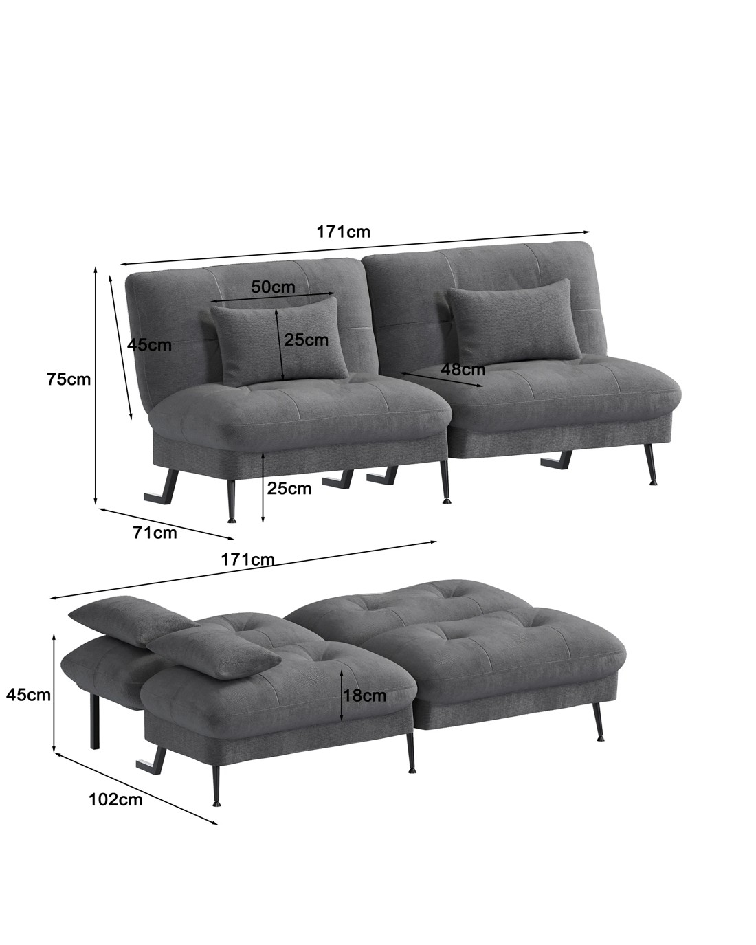 Sofa Bed Size: 102*171*45cm