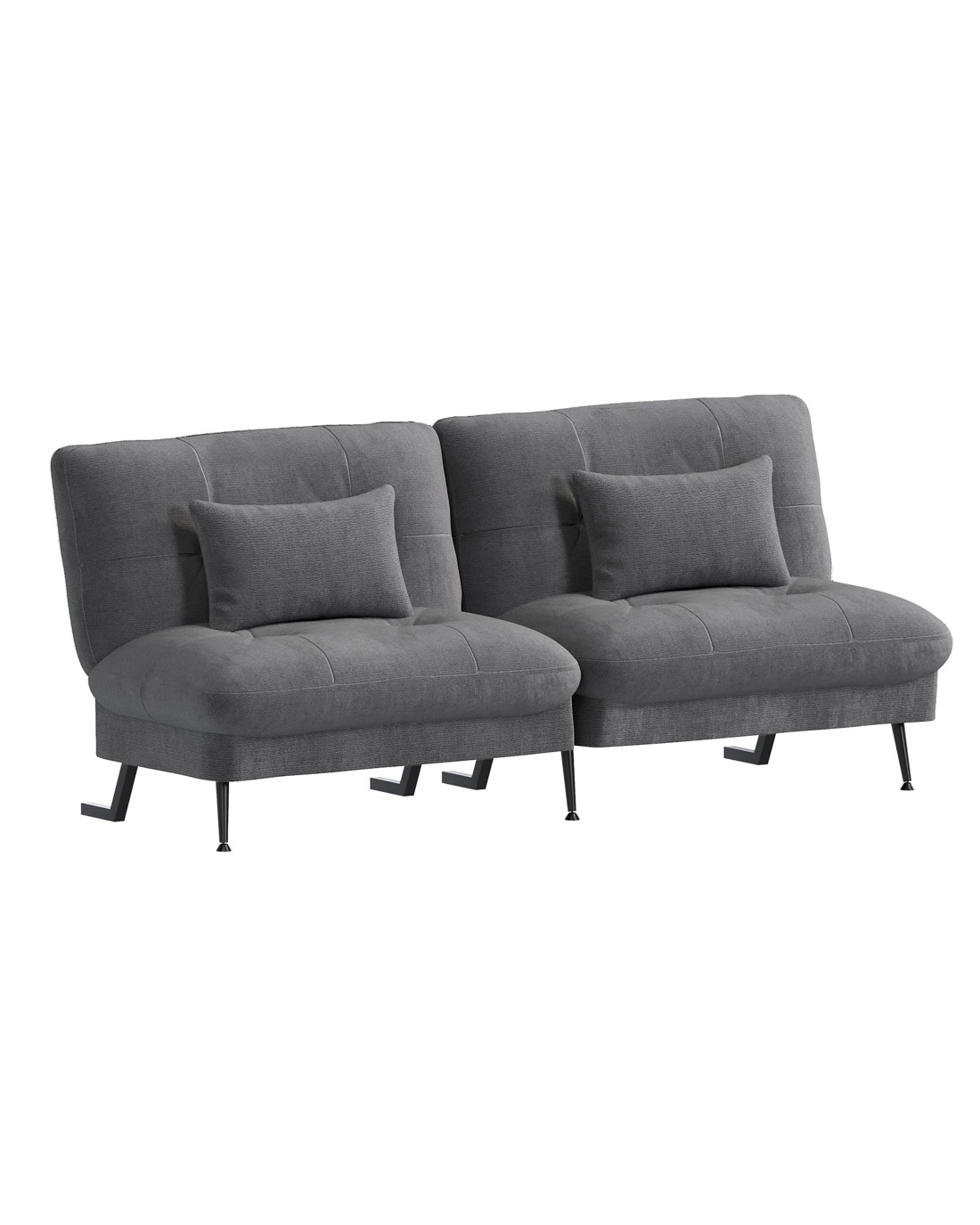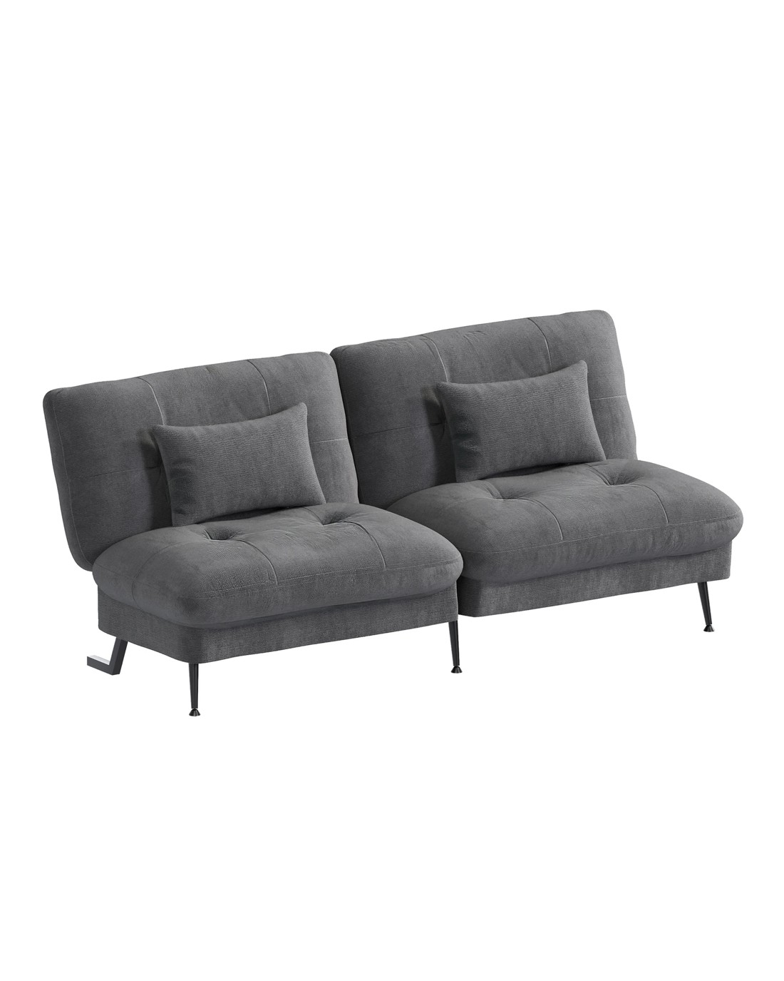 Built on a robust metal legs with reinforced particle board supports, this futon couch guarantees long-lasting durability and a 300kg weight capacity. The plush sponge padding offers day-long comfort, while the included 2 pillows enhance convenience.