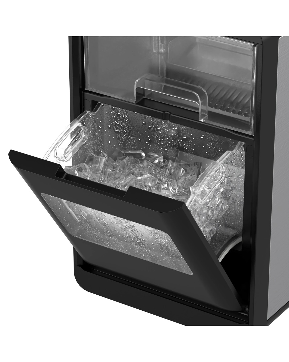 Get fresh crescent ice in as little as 15 minutes. This compact ice maker is ideal for quick cooling, keeping your beverages cold with minimal wait time.
