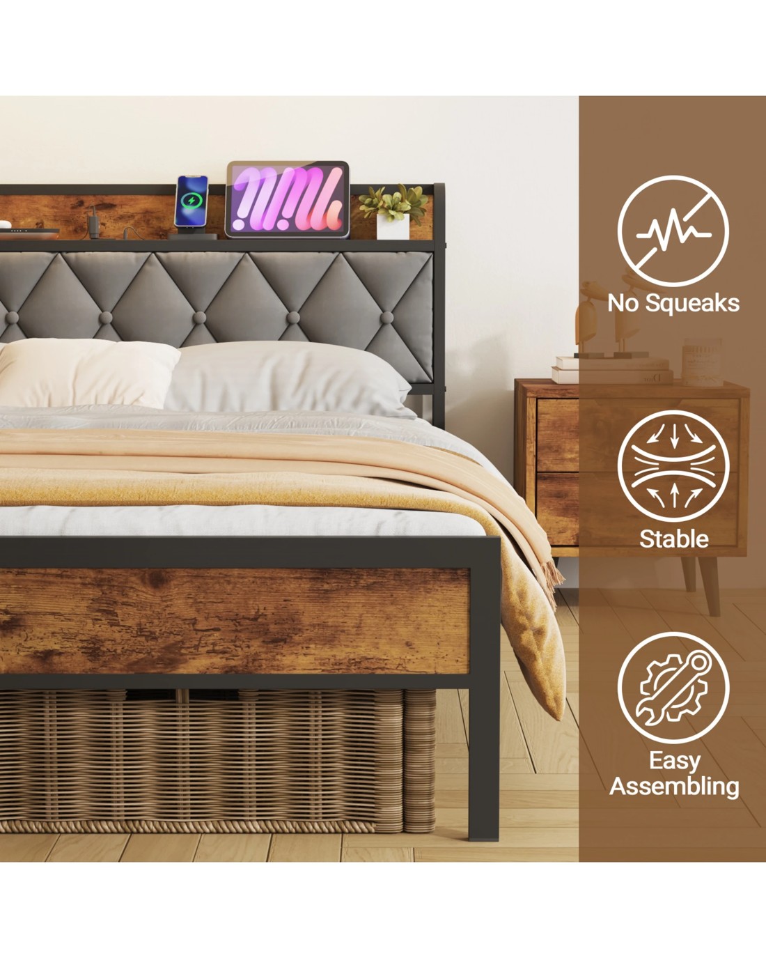 Sold by AdvwinAdvwin Double Bed Frame With Charging Station & Usb Ports Storage Tufted Headboard Shelf