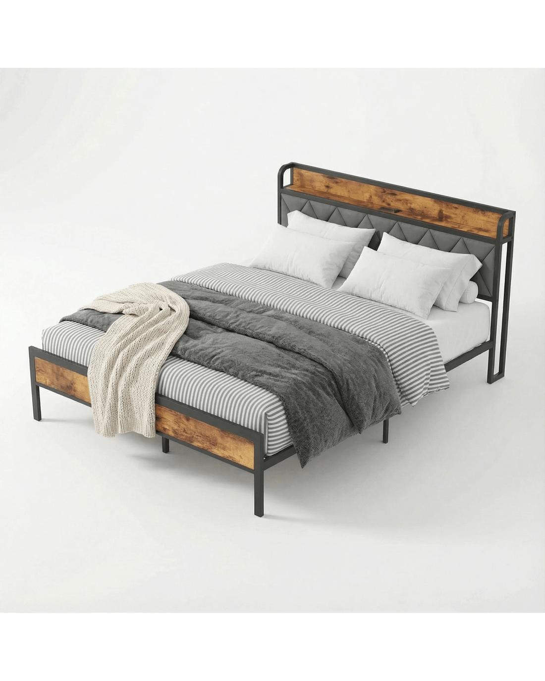 Upgrade your bedroom with the Advwin Industrial Style Bed Frame. Featuring a modern industrial design, this bed frame adds a touch of contemporary charm to any room. The fabric upholstered headboard provides a comfortable and cozy space to rest your head. With built-in storage and display space on the headboard, you can conveniently store and showcase your favorite items.