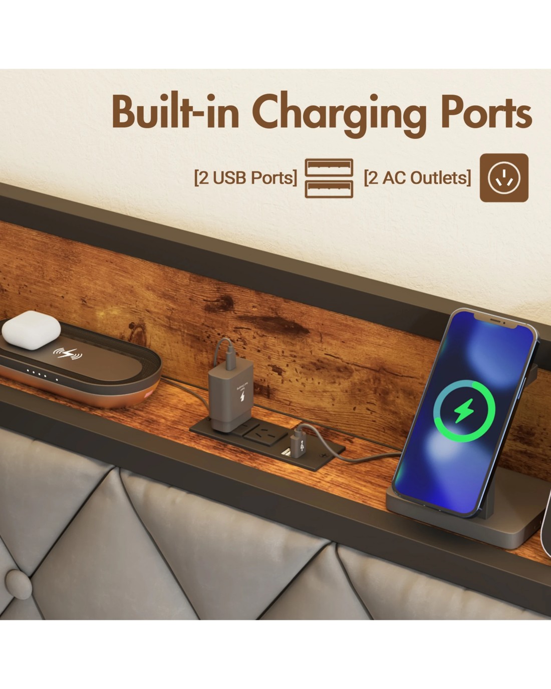 Headboard With Charging Station: Charging bed frame with 1 USB & 1 Type C ports and 2 standard outlets. Storage headboard a llows you to easily charge your tablet, cell phone, and other mobile devices within easy reach of your bed.