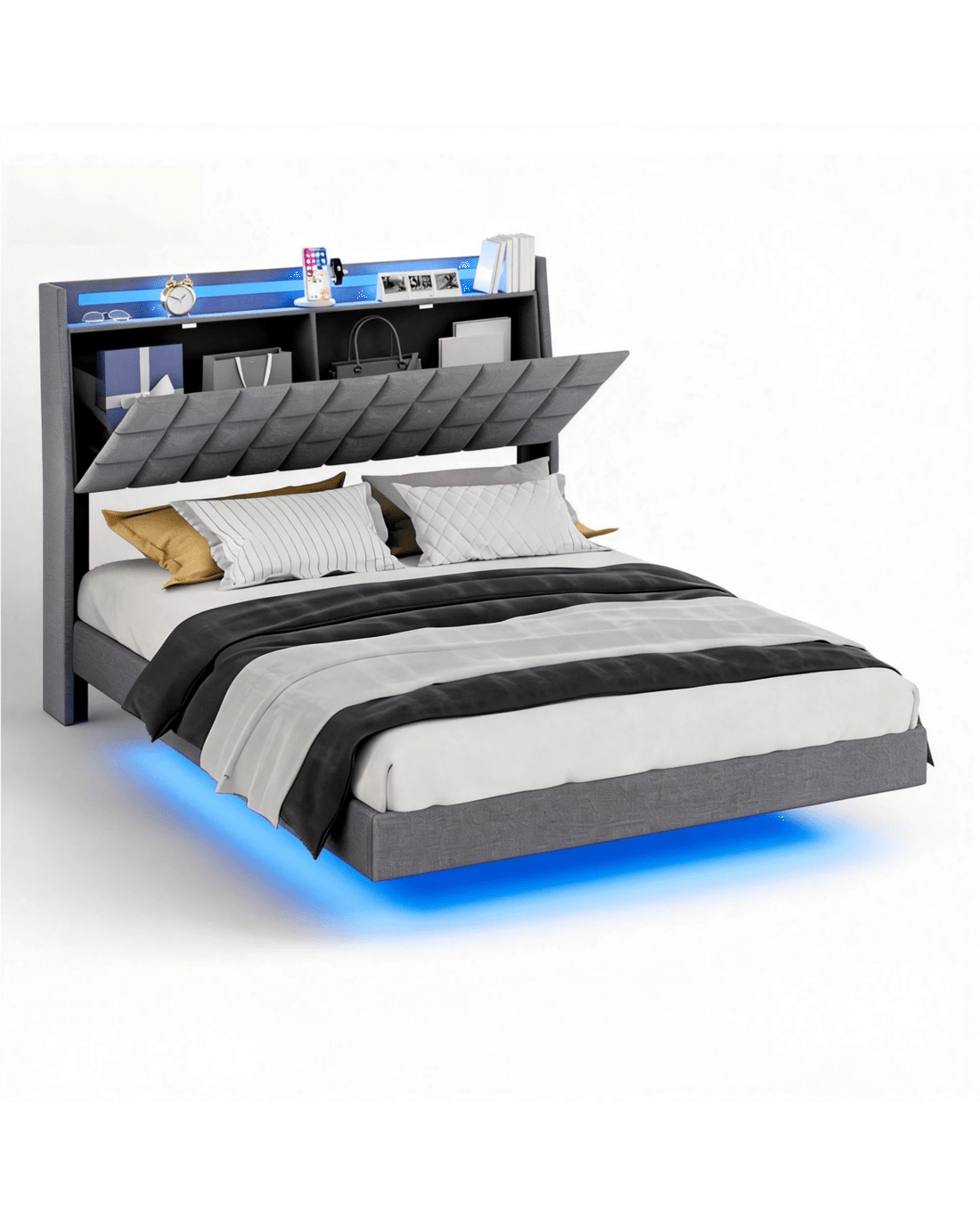 Sold by AdvwinAdvwin Double Floating Bed Frame with LED Lights and Storage Headboard - Grey