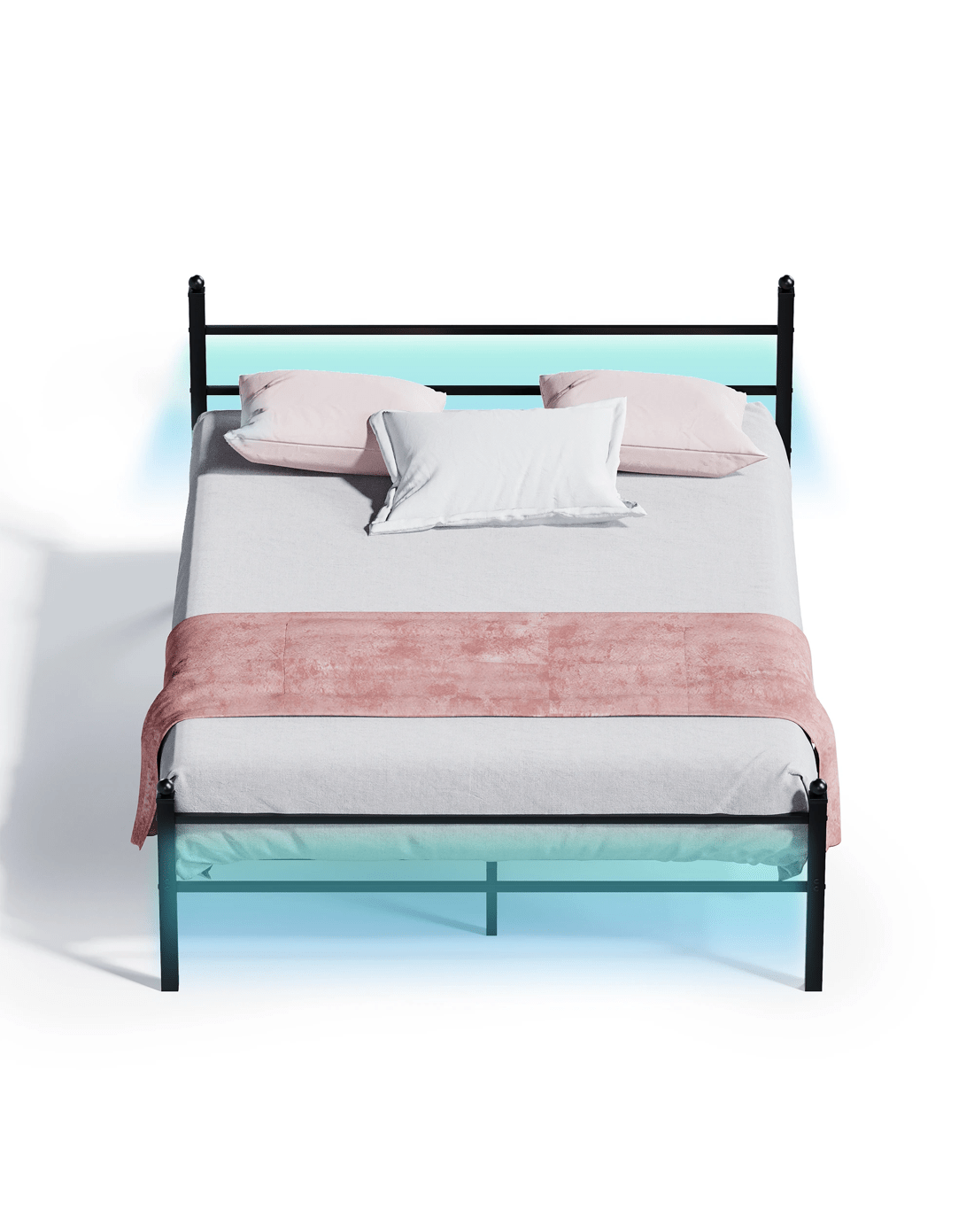 Advwin Double Size LED Bed Frame with Charging Station Metal Platform