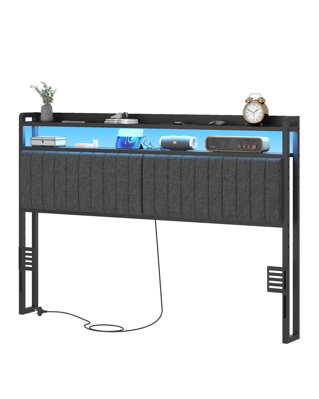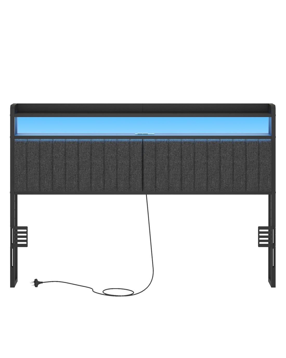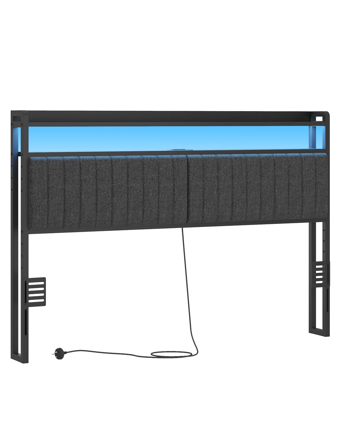 Advwin Double Size Storage Headboard Upholstered with LED Light Charging Station Height Adjustable - Black