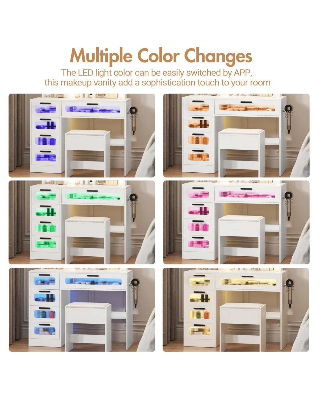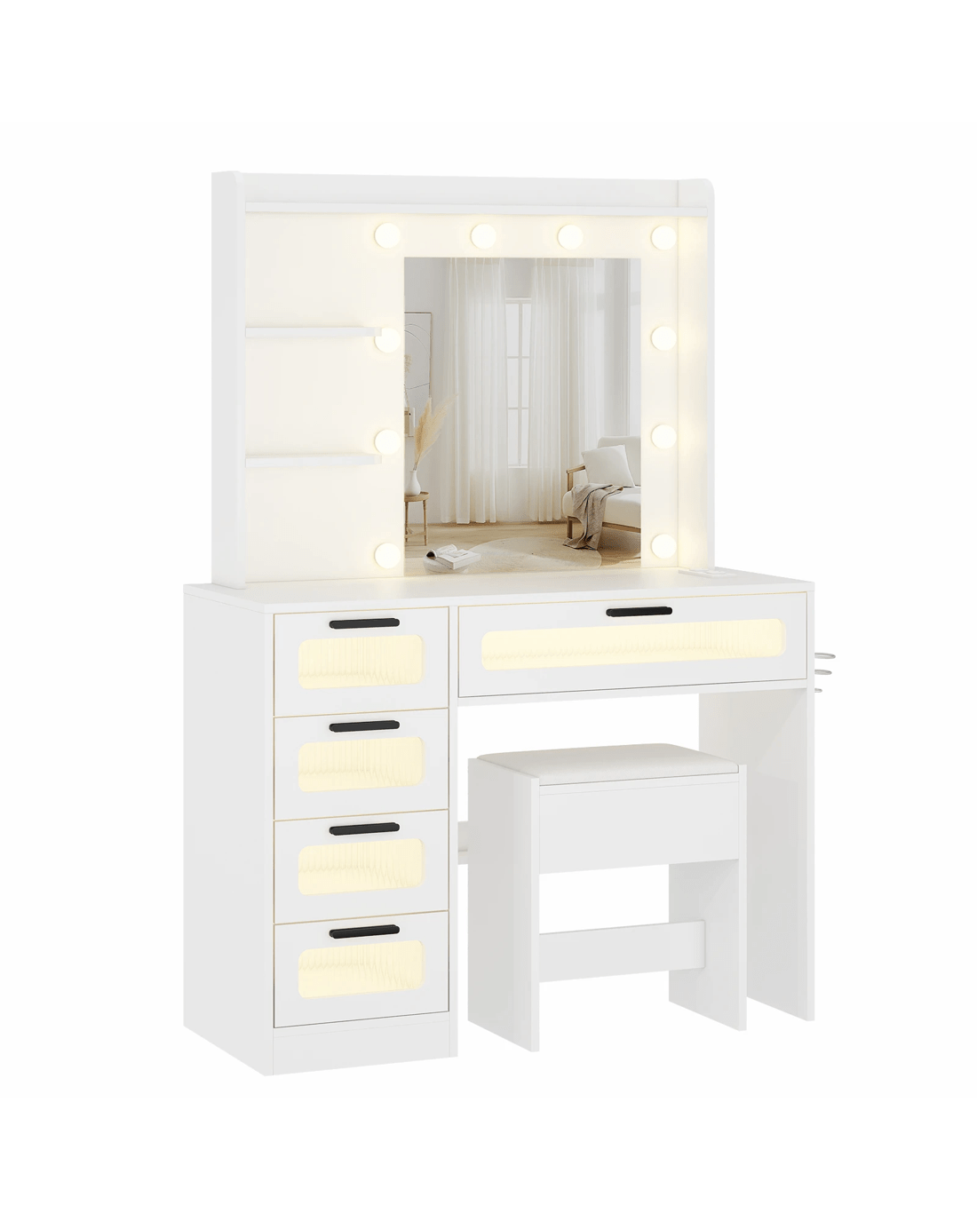 This makeup vanity features with charging station includes 2 USB ports and 2 power outlets, which will meet your needs to charge your phone, desk lamp or hair dryer freely and simultaneously. It’s just within your arm’s reach and provides great convenience.
