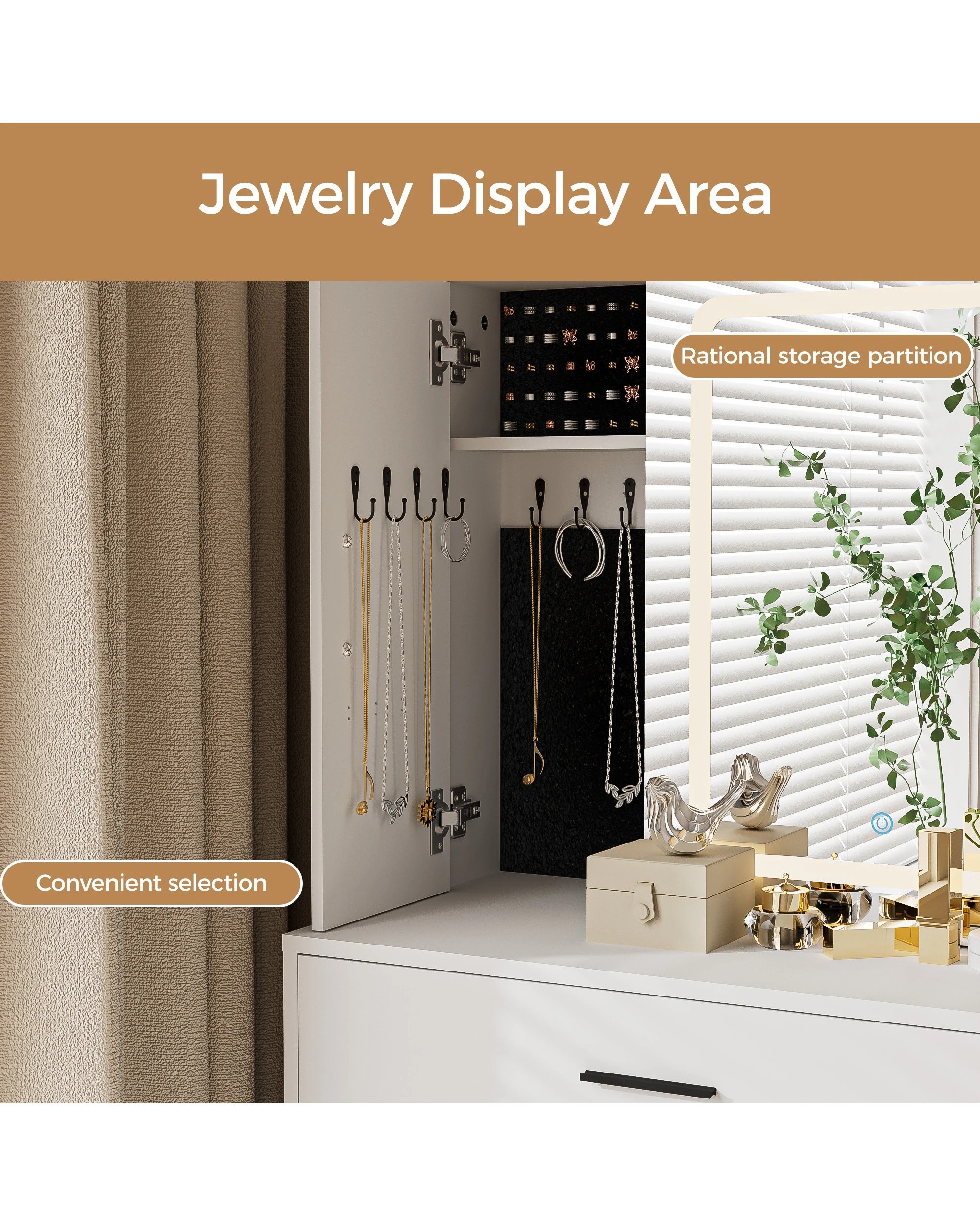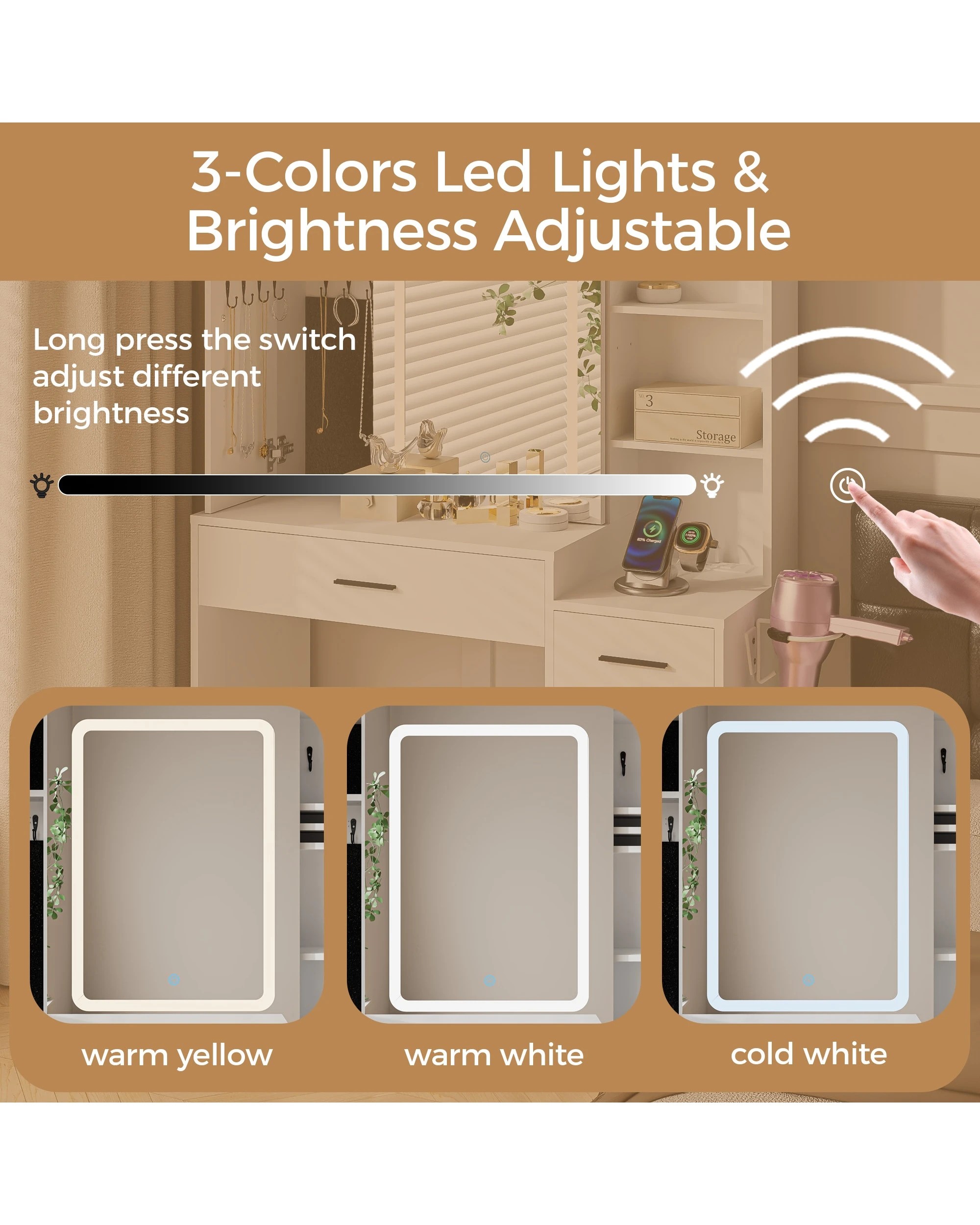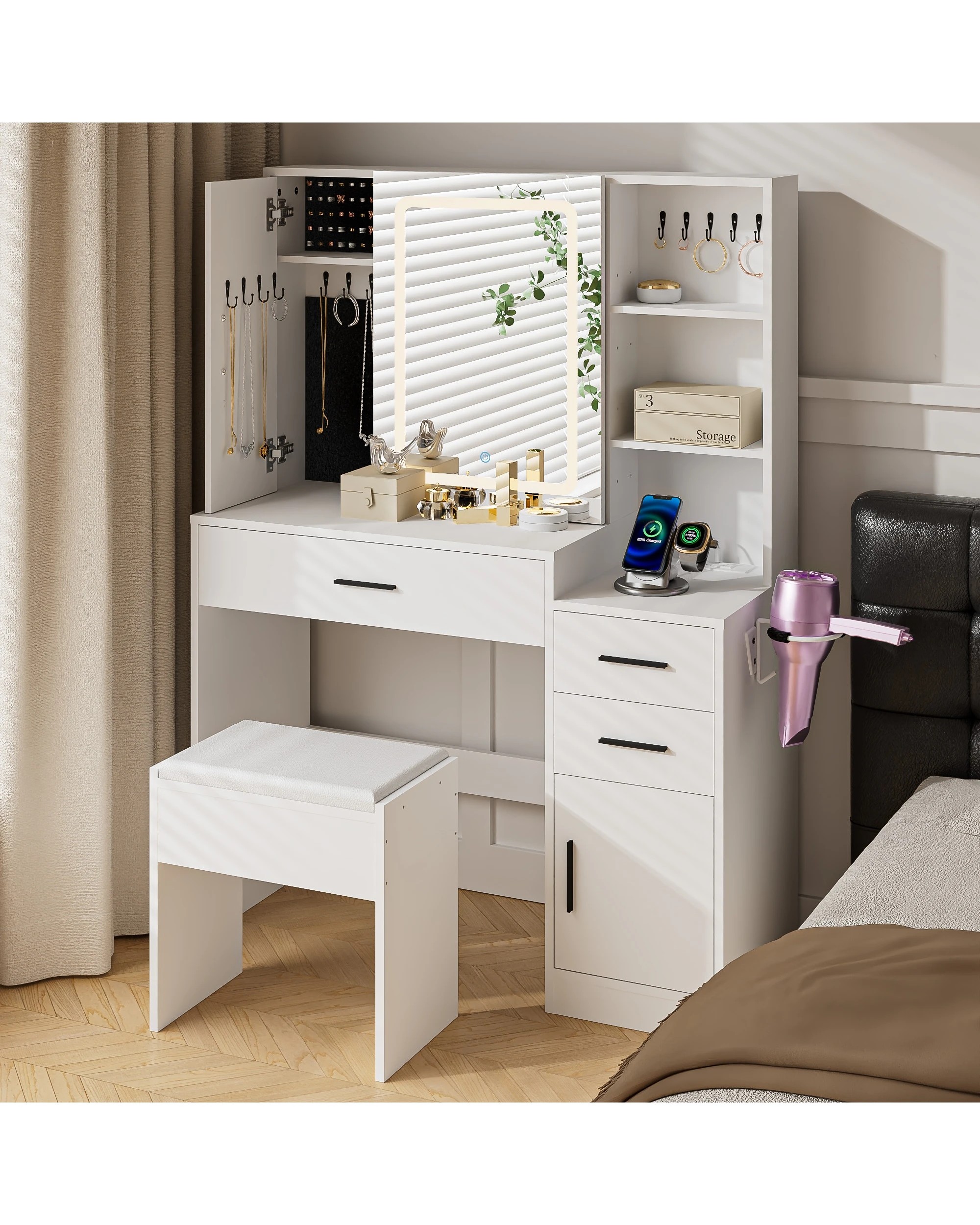 Advwin Dressing Table Stool Set With Mirror Led Lights Jewelry Armoire