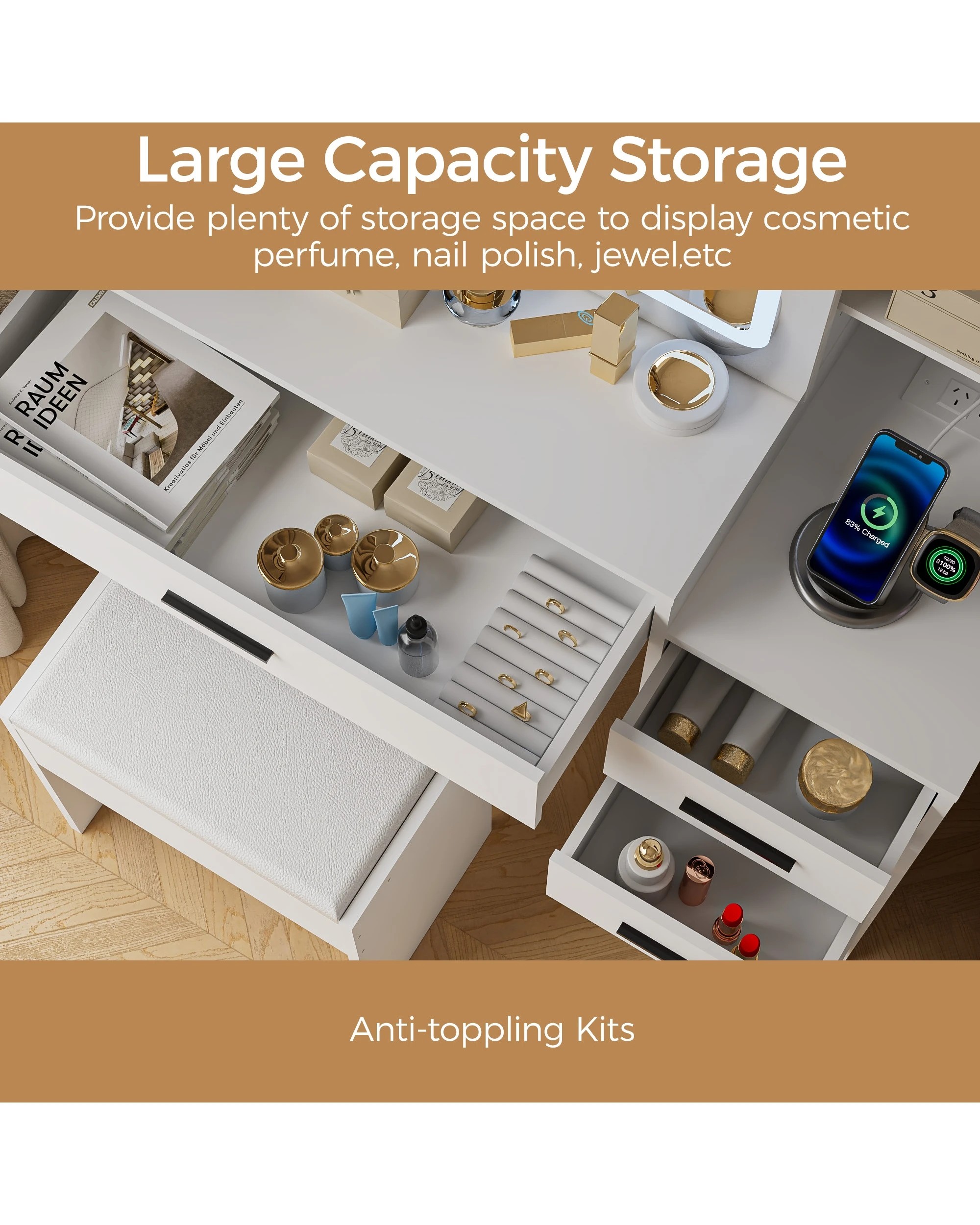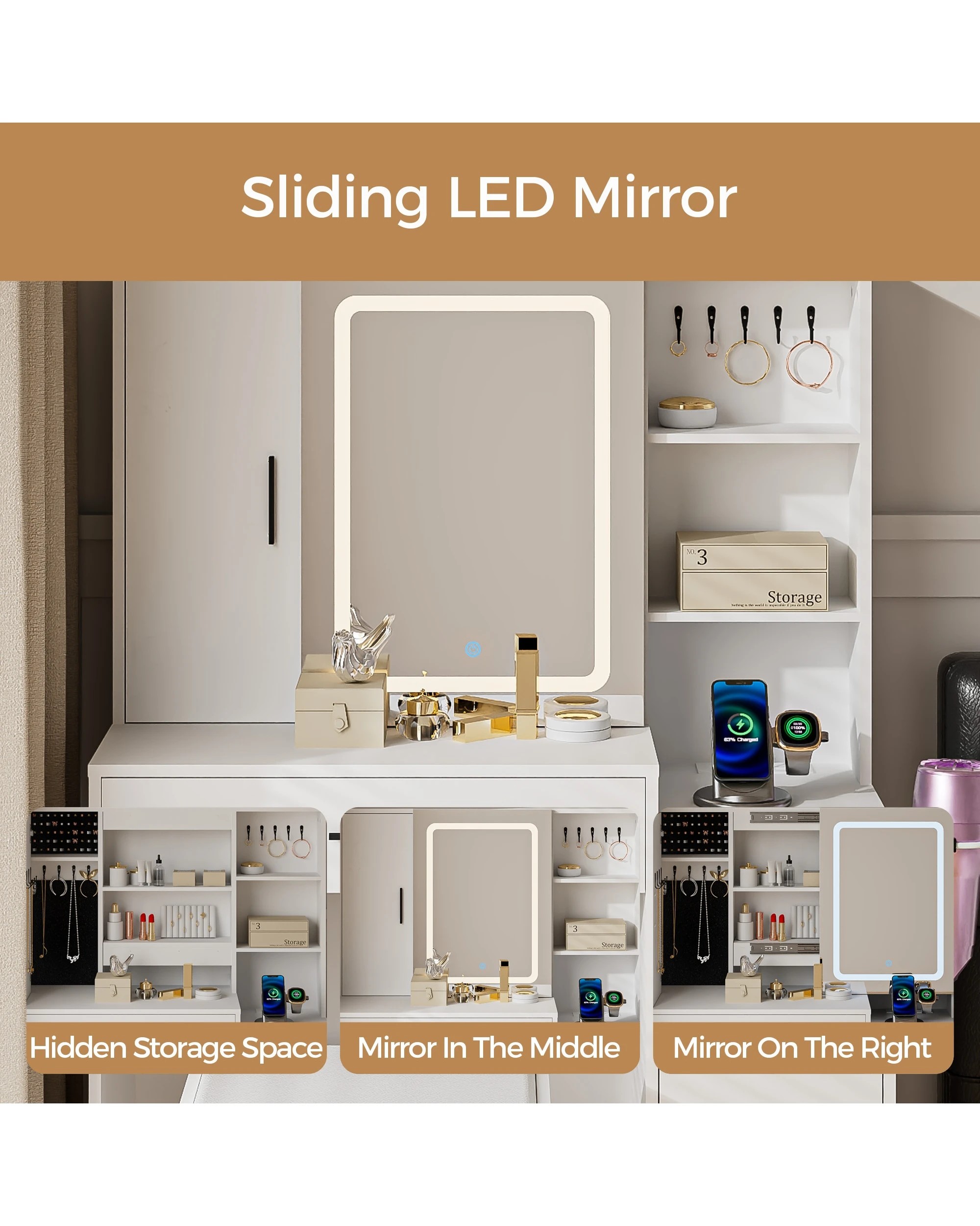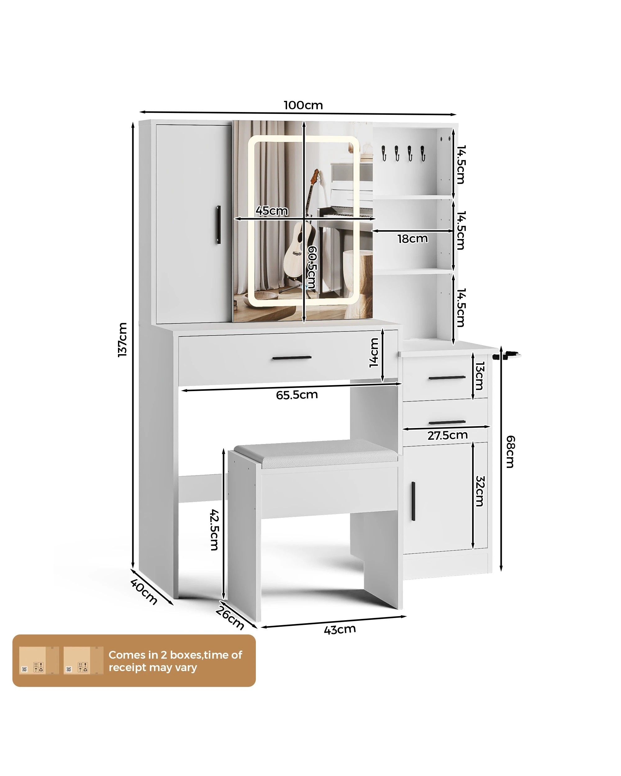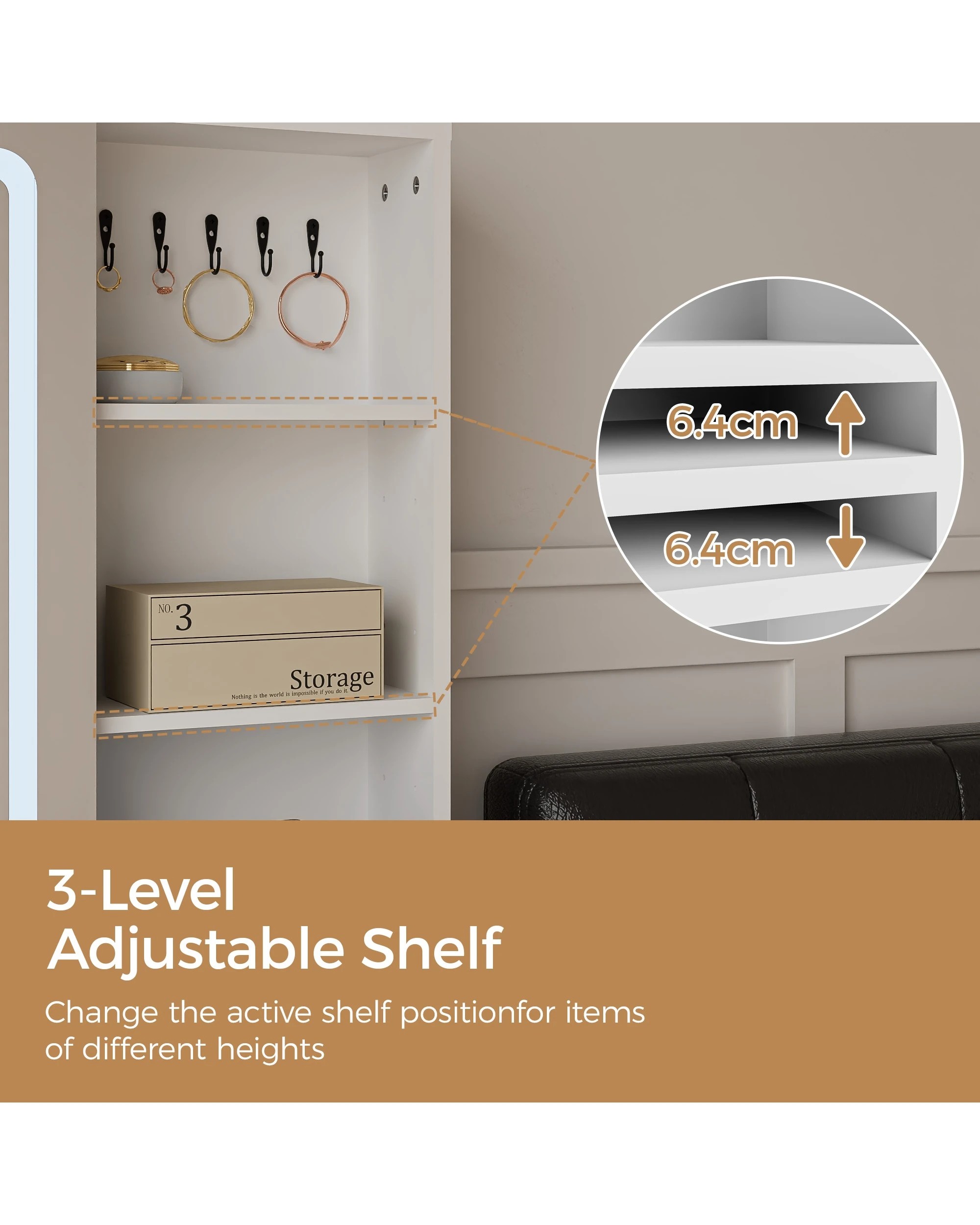 Advwin Dressing Table Stool Set With Mirror Led Lights Jewelry Armoire