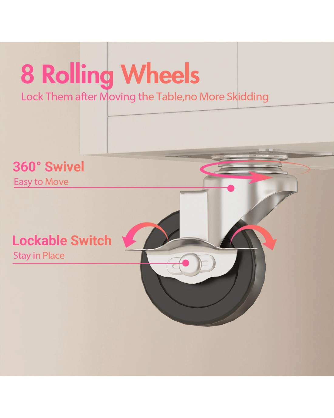 Smooth, Stable Mobility: The desk is equipped with 8 lockable caster wheels for easy movement across different spaces, providing stability while in use. Ideal for various environments like home nail studios, professional beauty salons, or nail