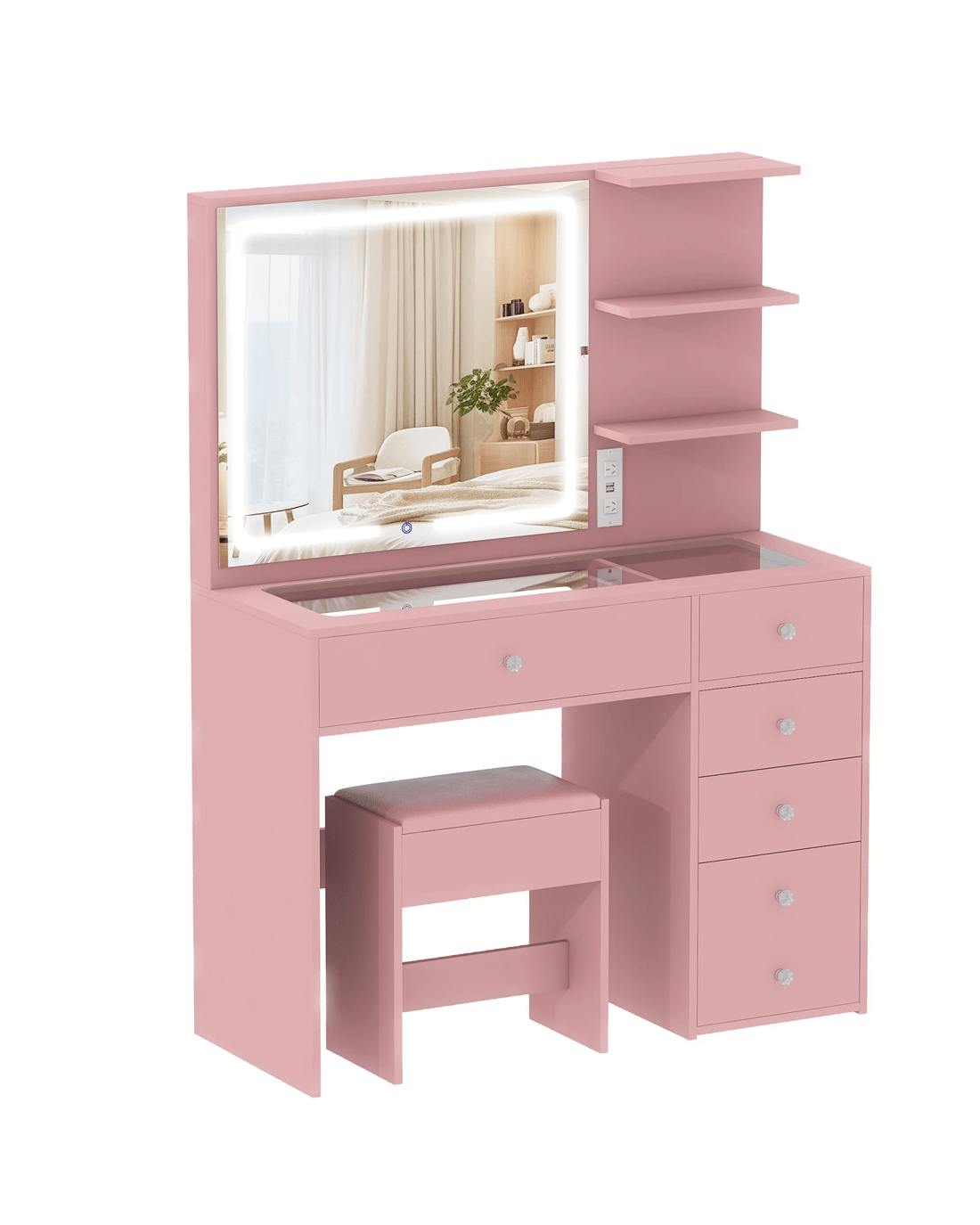 Sold by AdvwinAdvwin Dressing Table with LED Mirror 5 Drawers and Charging Station - Pink