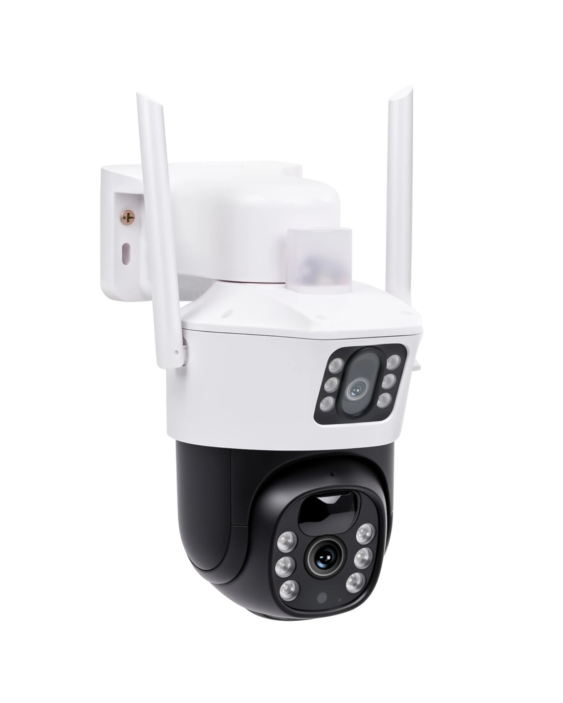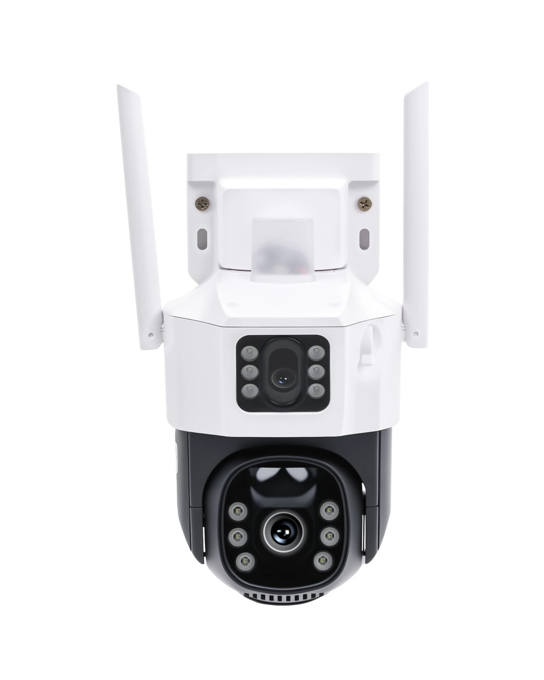 This outdoor solar security camera features a dual-lens design with dual view monitoring, combining a fixed camera and a PTZ camera to reduce blind spots and provide wider coverage for your home, yard, garage, or entrance.