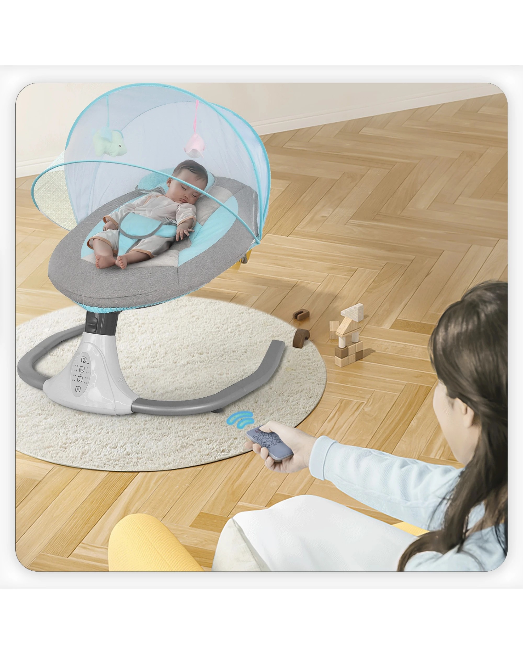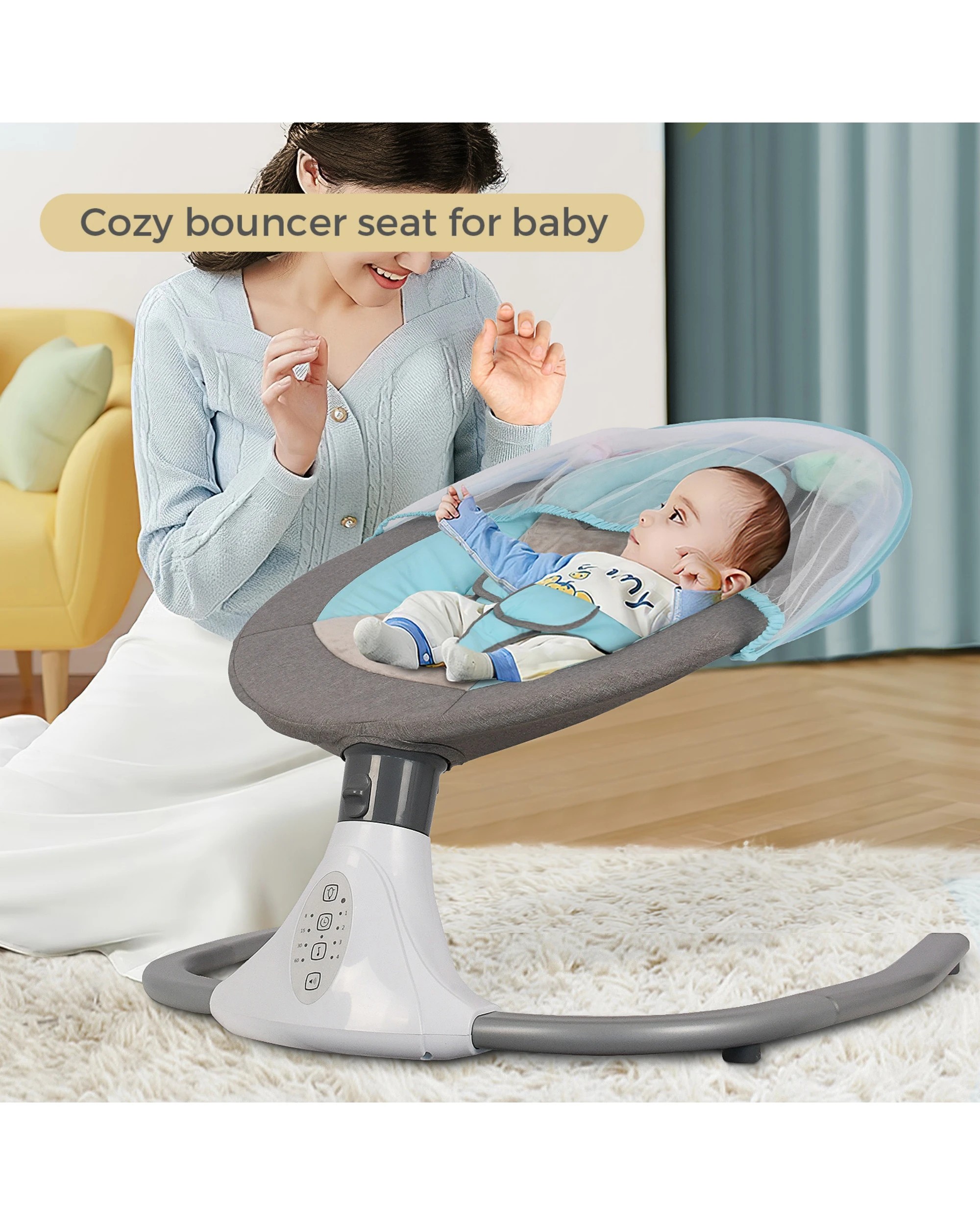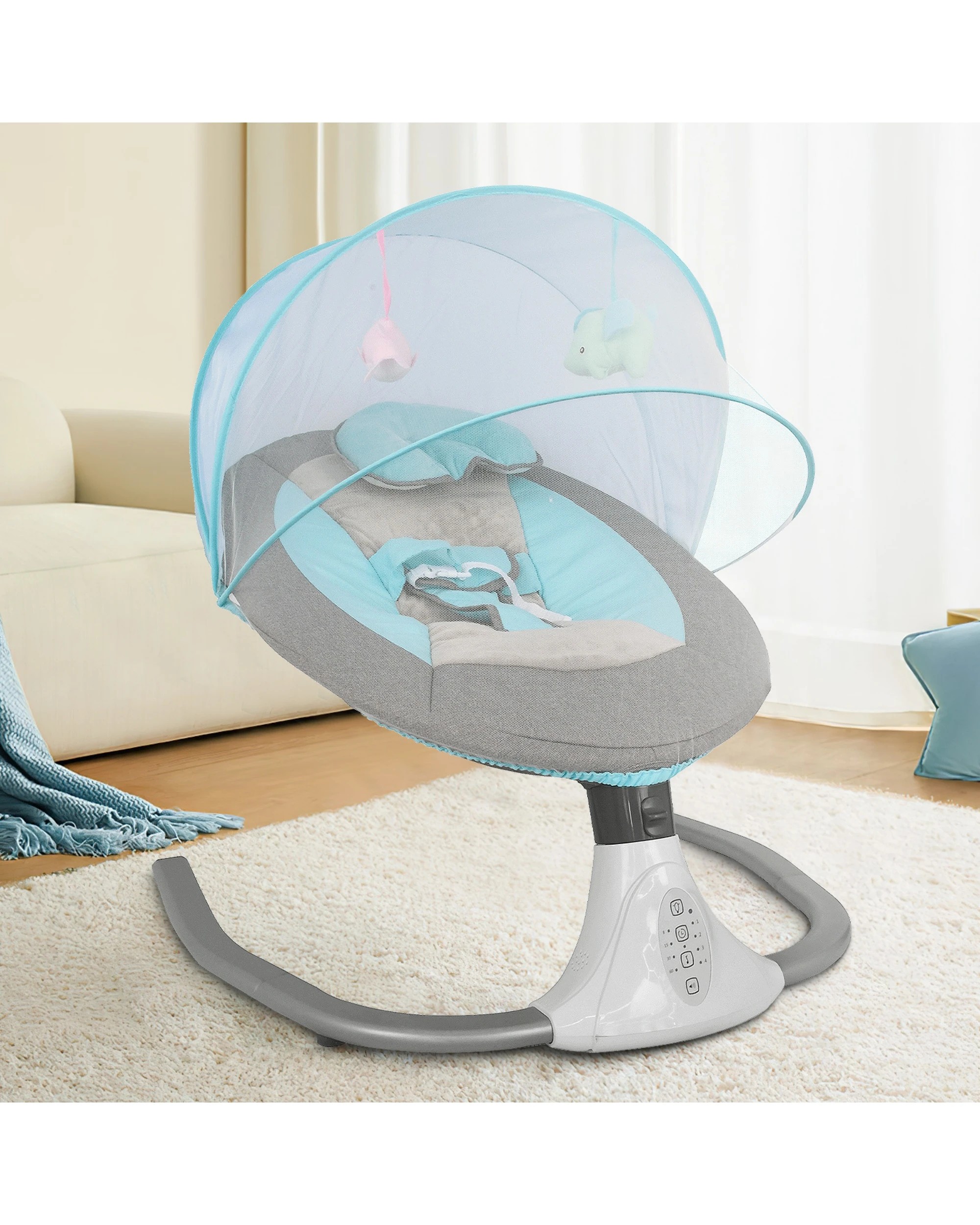 Advwin Electric Baby Swing Baby Bouncer Rocker With Mosquito Net Toddler Seat Soft Peachskin Blue