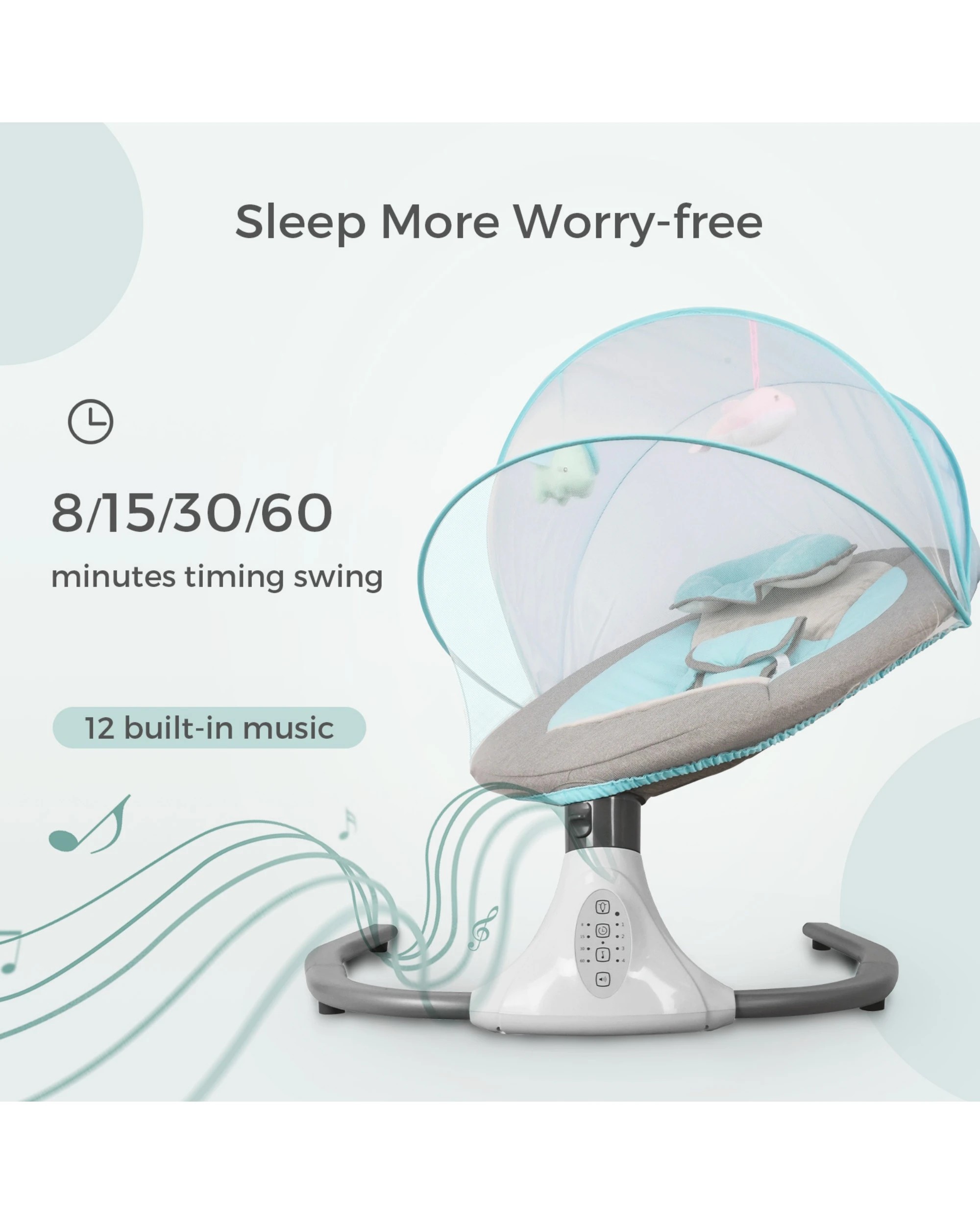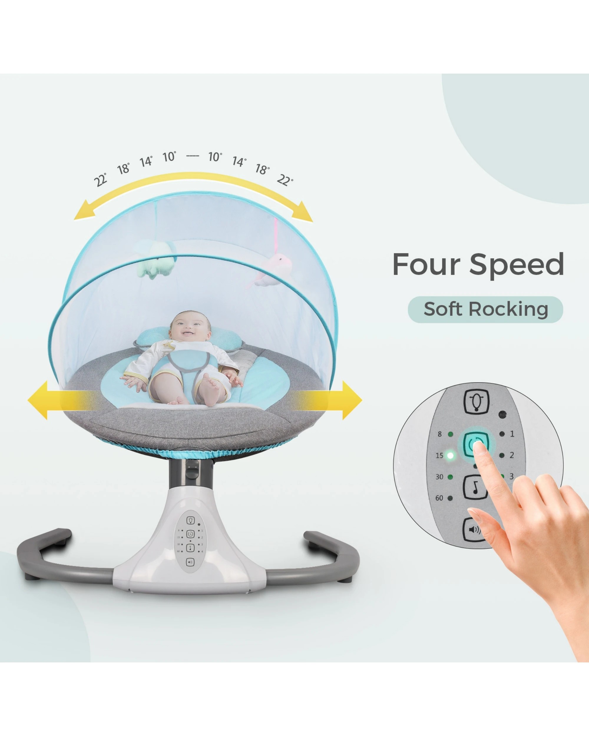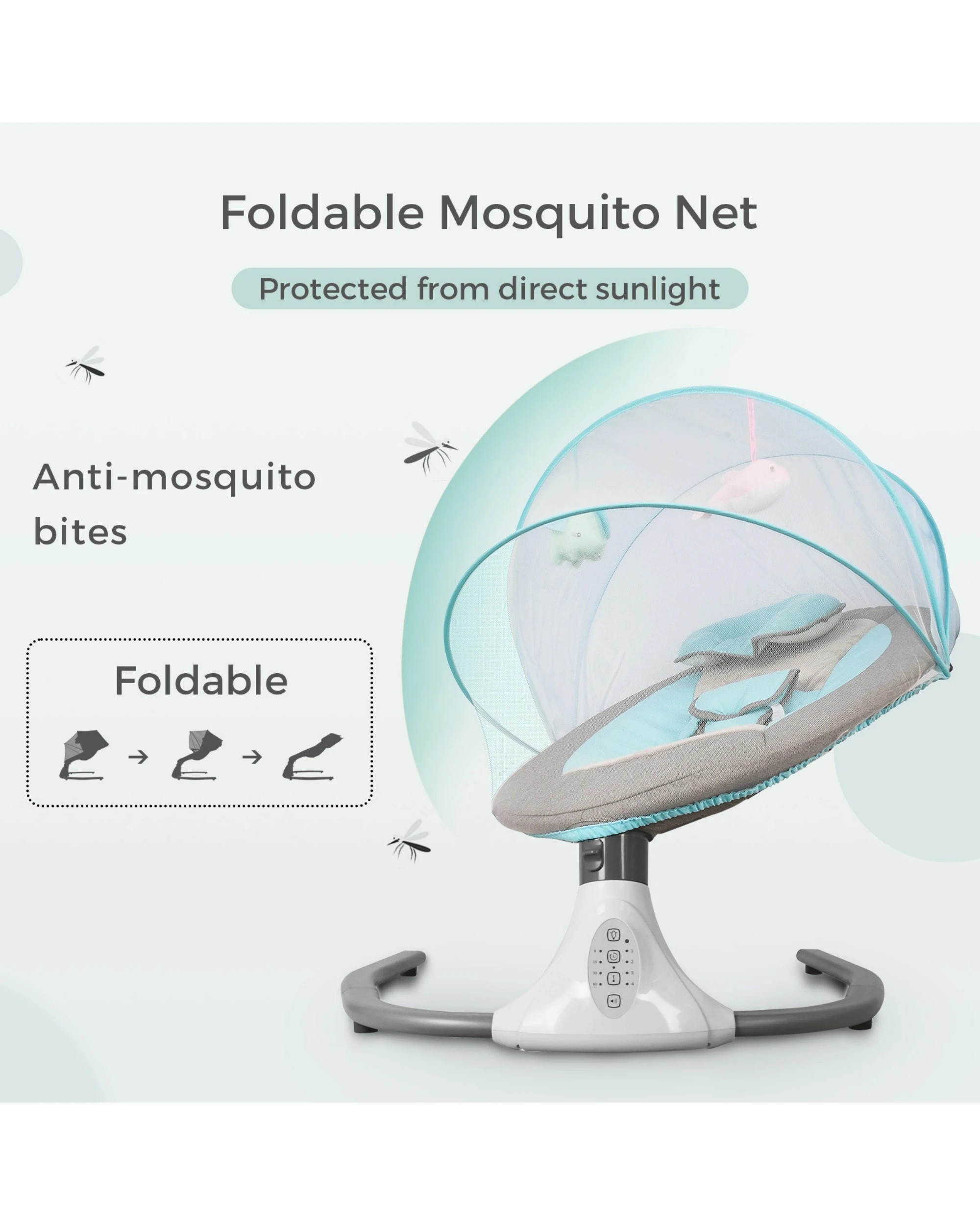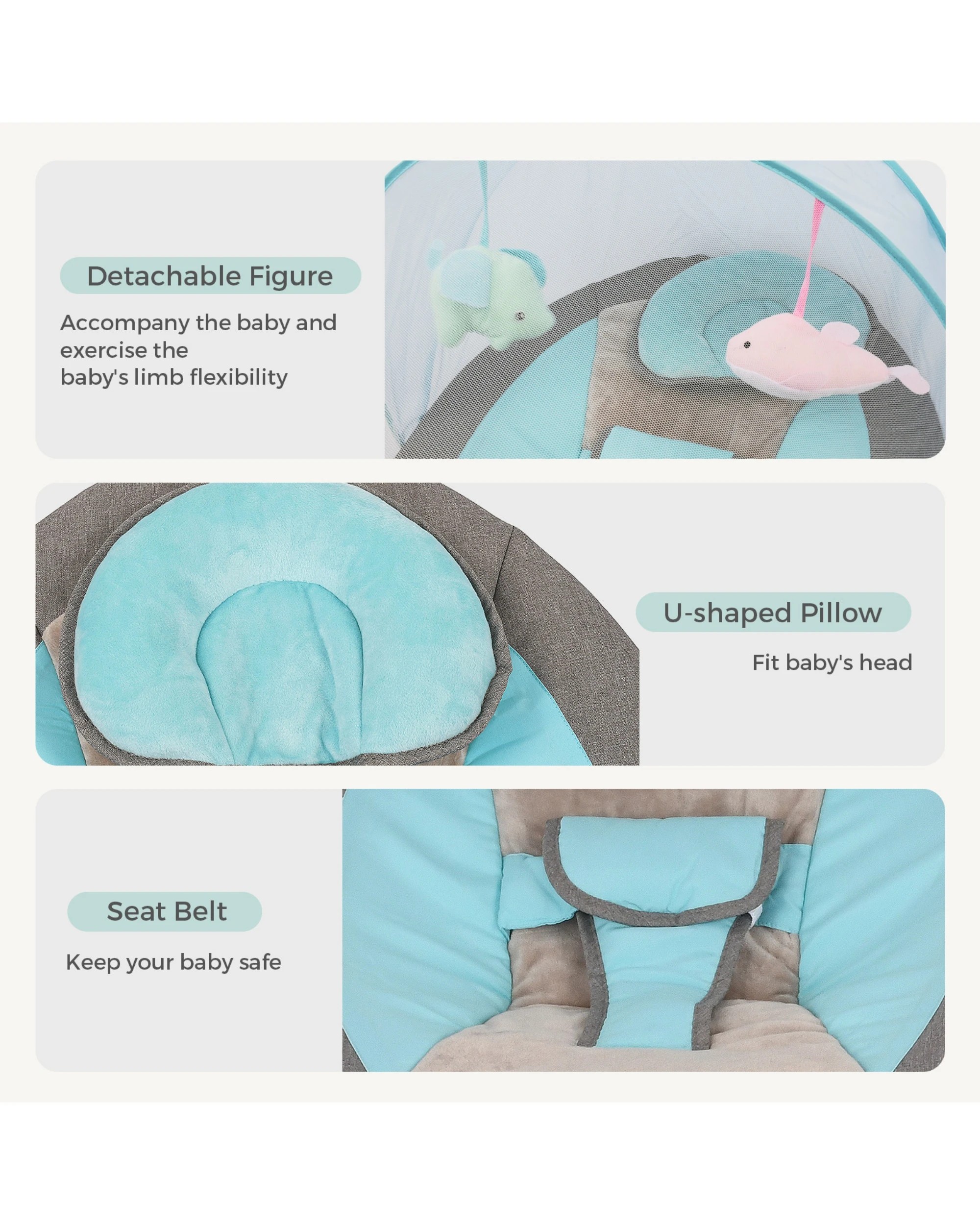 Advwin Electric Baby Swing Baby Bouncer Rocker With Mosquito Net Toddler Seat Soft Peachskin Blue