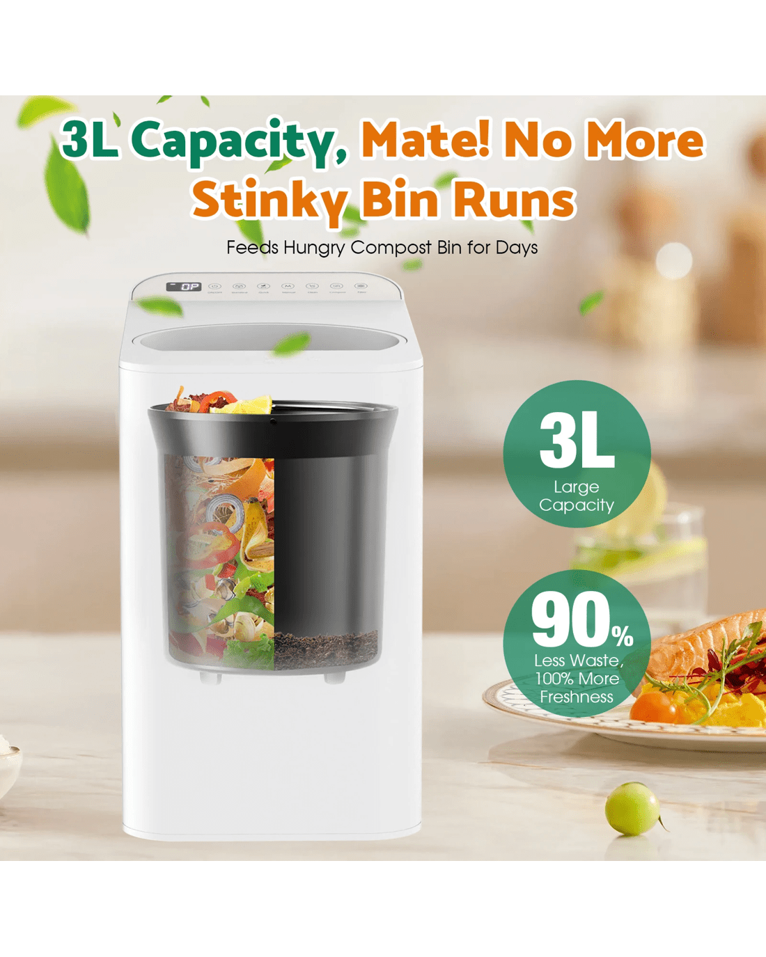 【3L Large Capacity Kitchen Compost Bin】