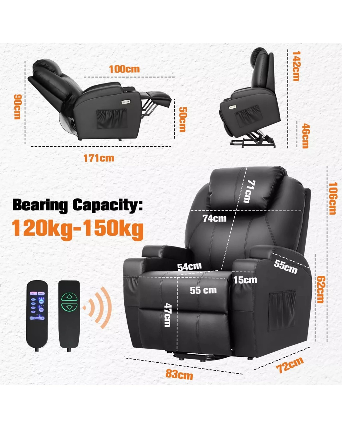 Advwin Electric Lift Recliner Chair Lounge Massage Heated Chair Leather Black