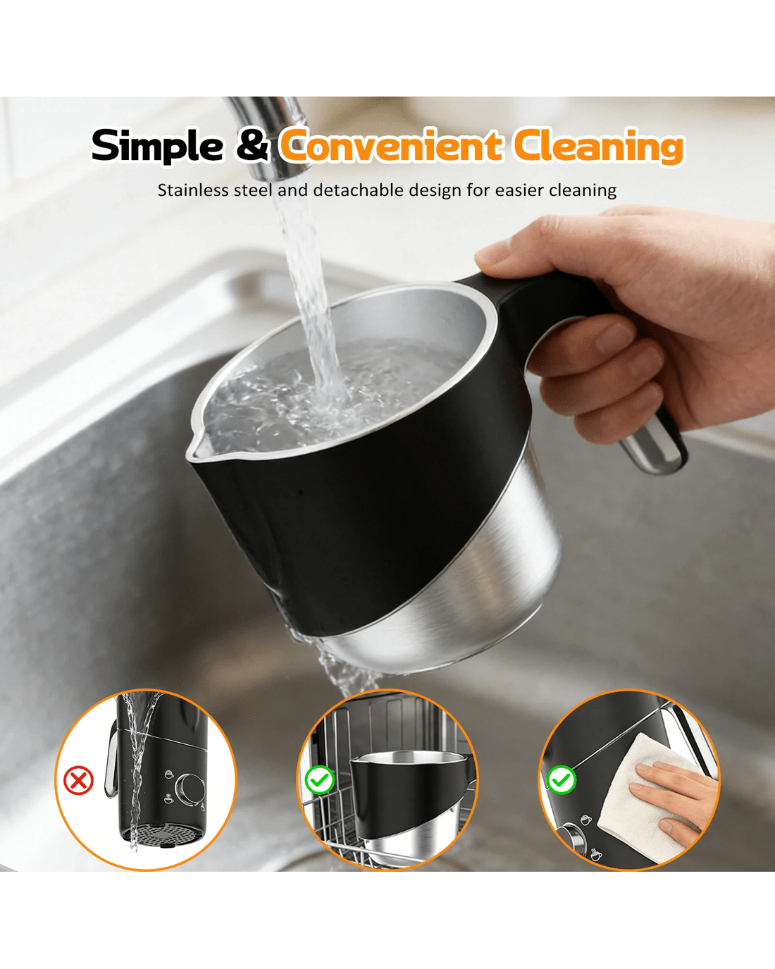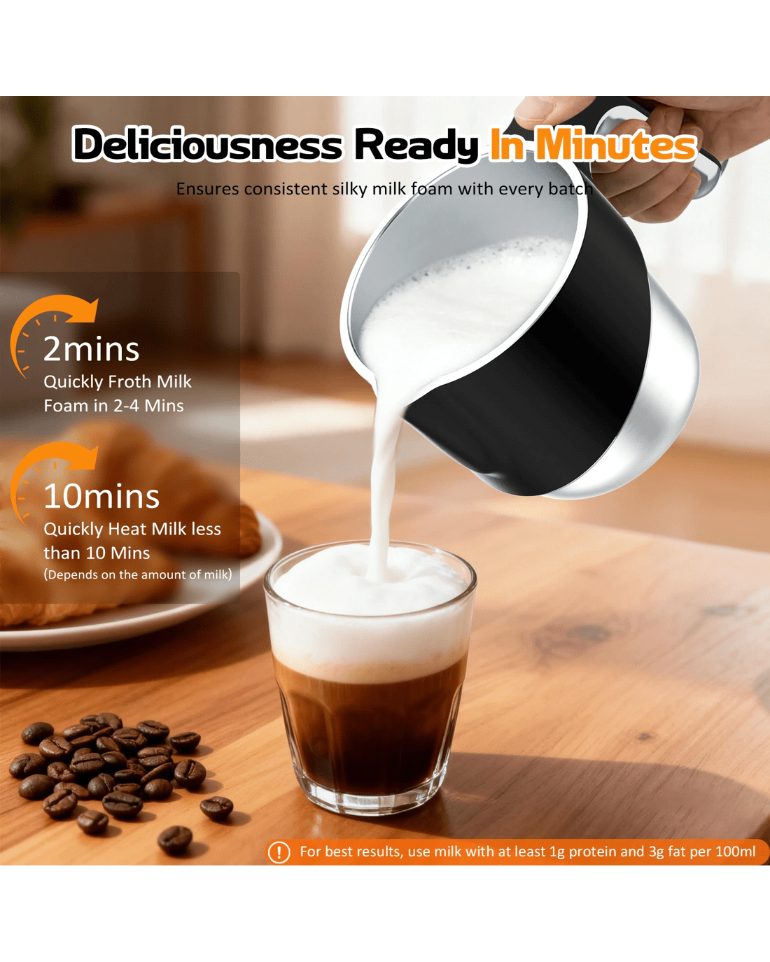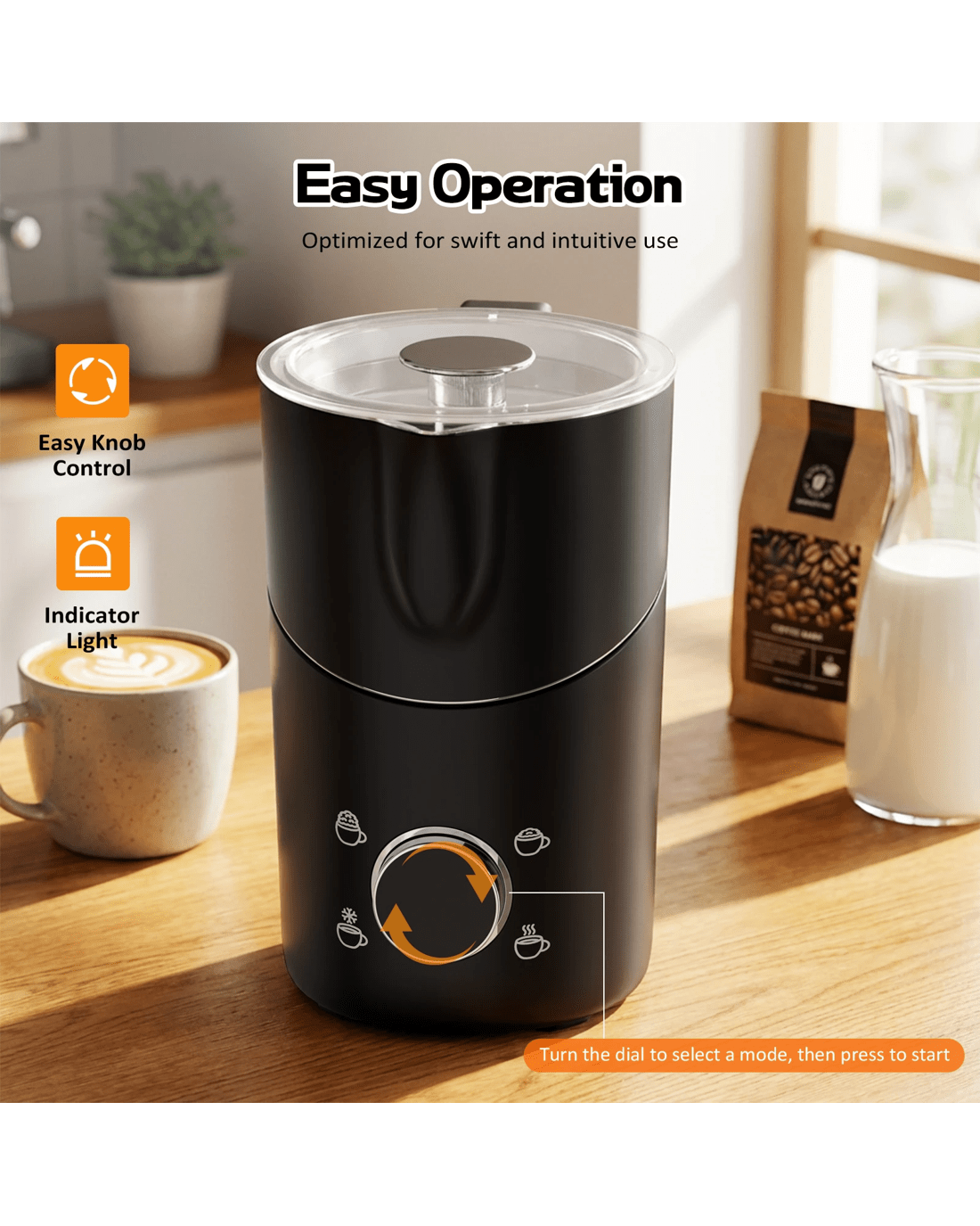 【Smooth & Rich Foam Ready in Minutes】Equipped with a powerful 550W heating system, this milk heater froths milk in 2–4 minutes and heats milk or hot cocoa in about 10 minutes. Actual speed varies depending on milk type, temperature, and volume. Simple one-dial control makes operation effortless—ideal for busy mornings and fast-paced lifestyles.