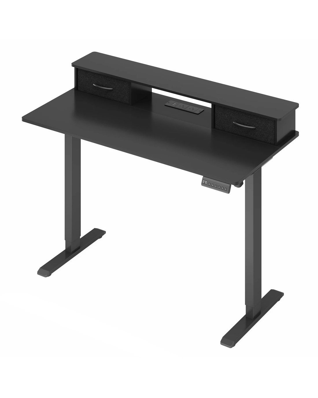 Advwin Electric Standing Desk with Monitor Stand 2 Drawers - Black
