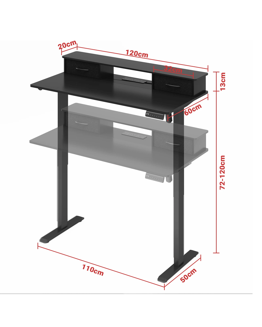 long periods of time. The lifting height of 72-120cm meets the adjustment needs of different ergonomic situations. Help you realize a new scientific office life!