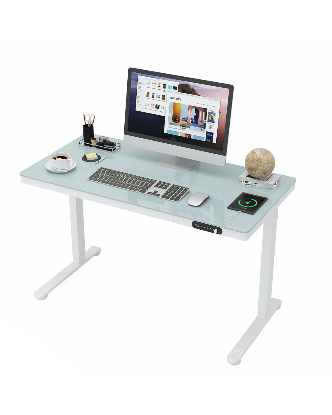 Advwin Electric Standing Desk with Drawer One-piece Glass Desktop - White