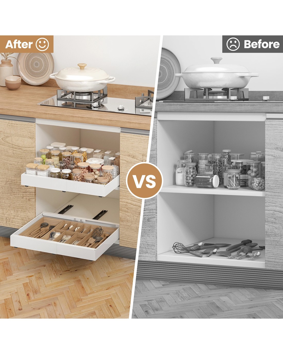 Upgrade your kitchen and maximizes every inch of your valuable cabinet space with the Advwin cabinet organizer!