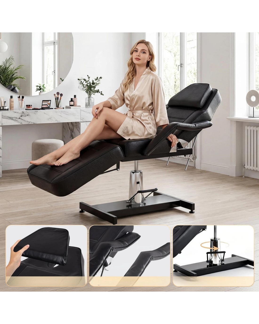 The Professional Beauty Bed is engineered to elevate your service quality. Combining robust hydraulic adjustability, tailored positioning, and premium, easy-maintenance materials, it delivers the reliability and comfort essential for modern beauty and