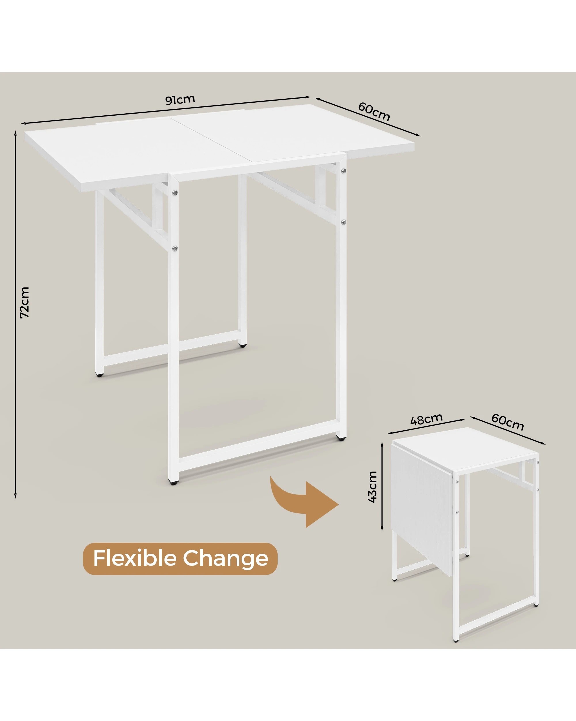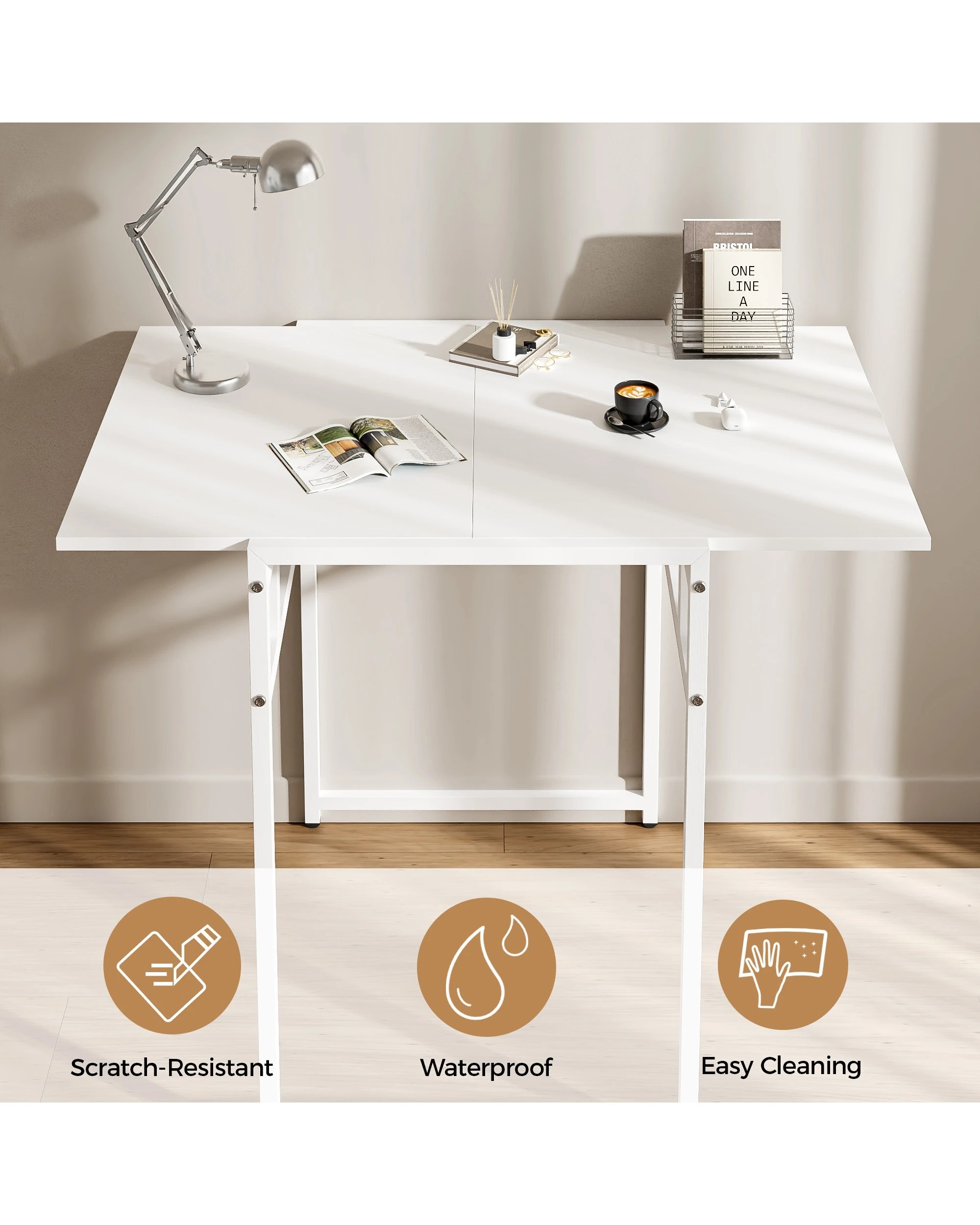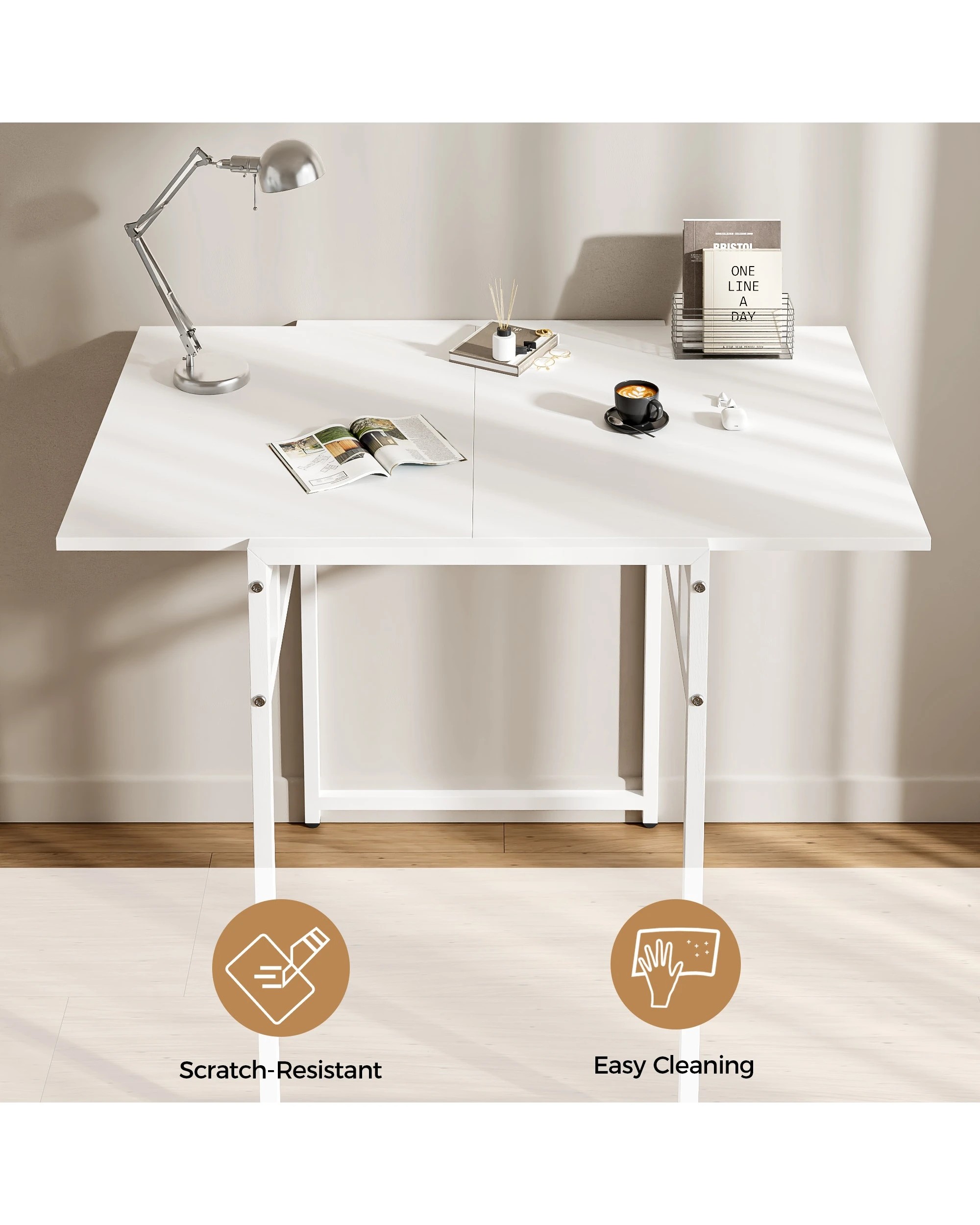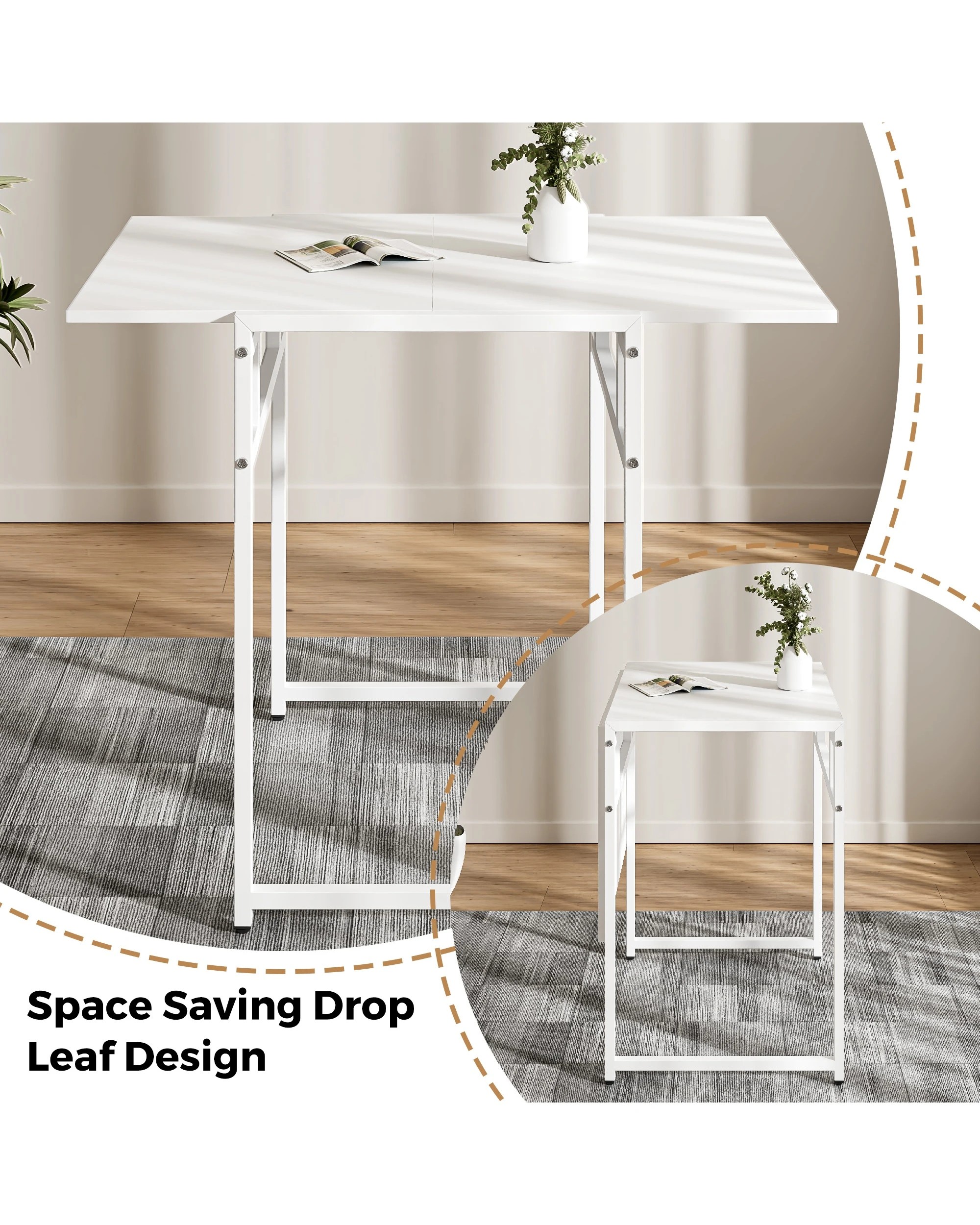 Advwin Folding Dining Table Foldable Drop Leaf Home Office Work Desk White