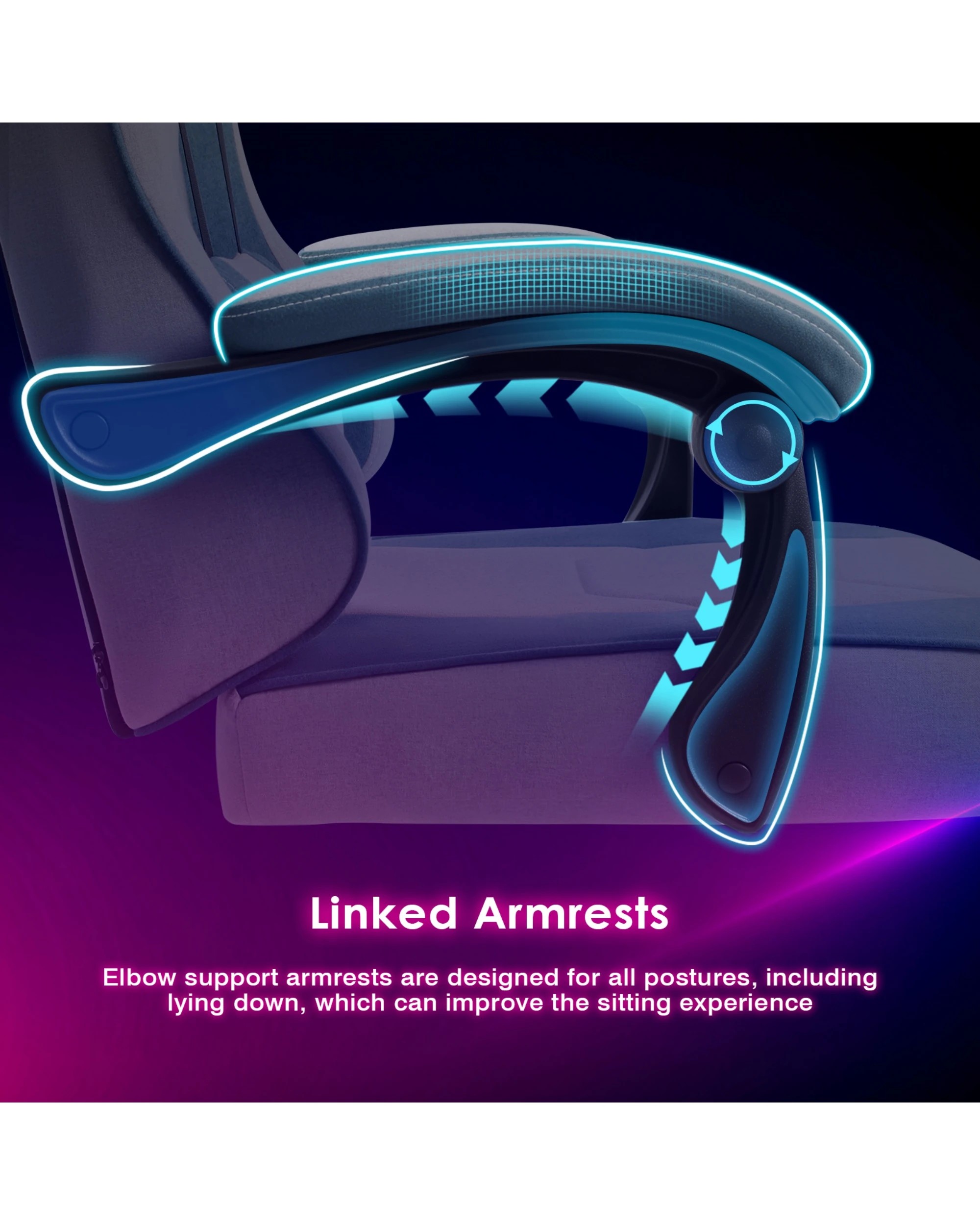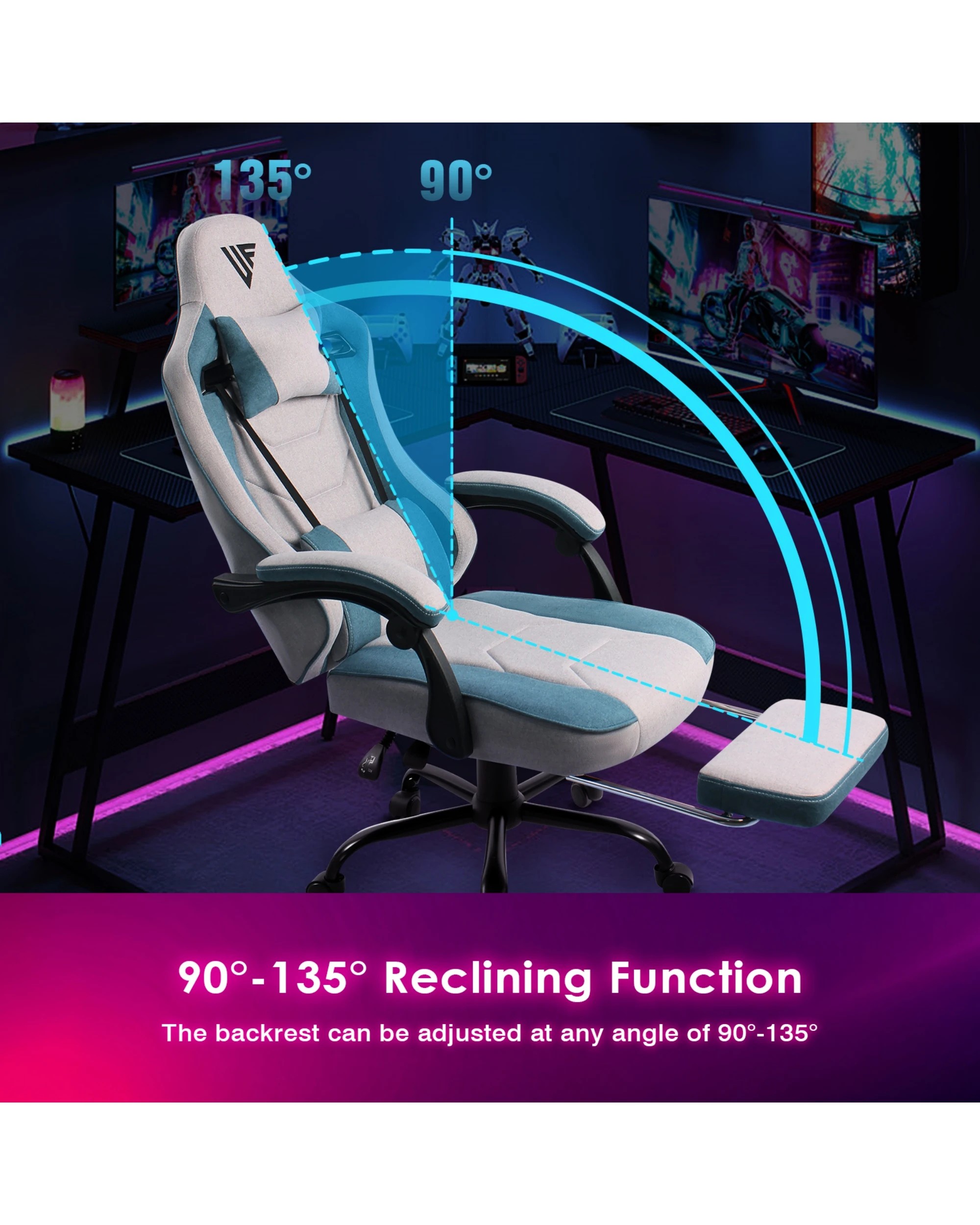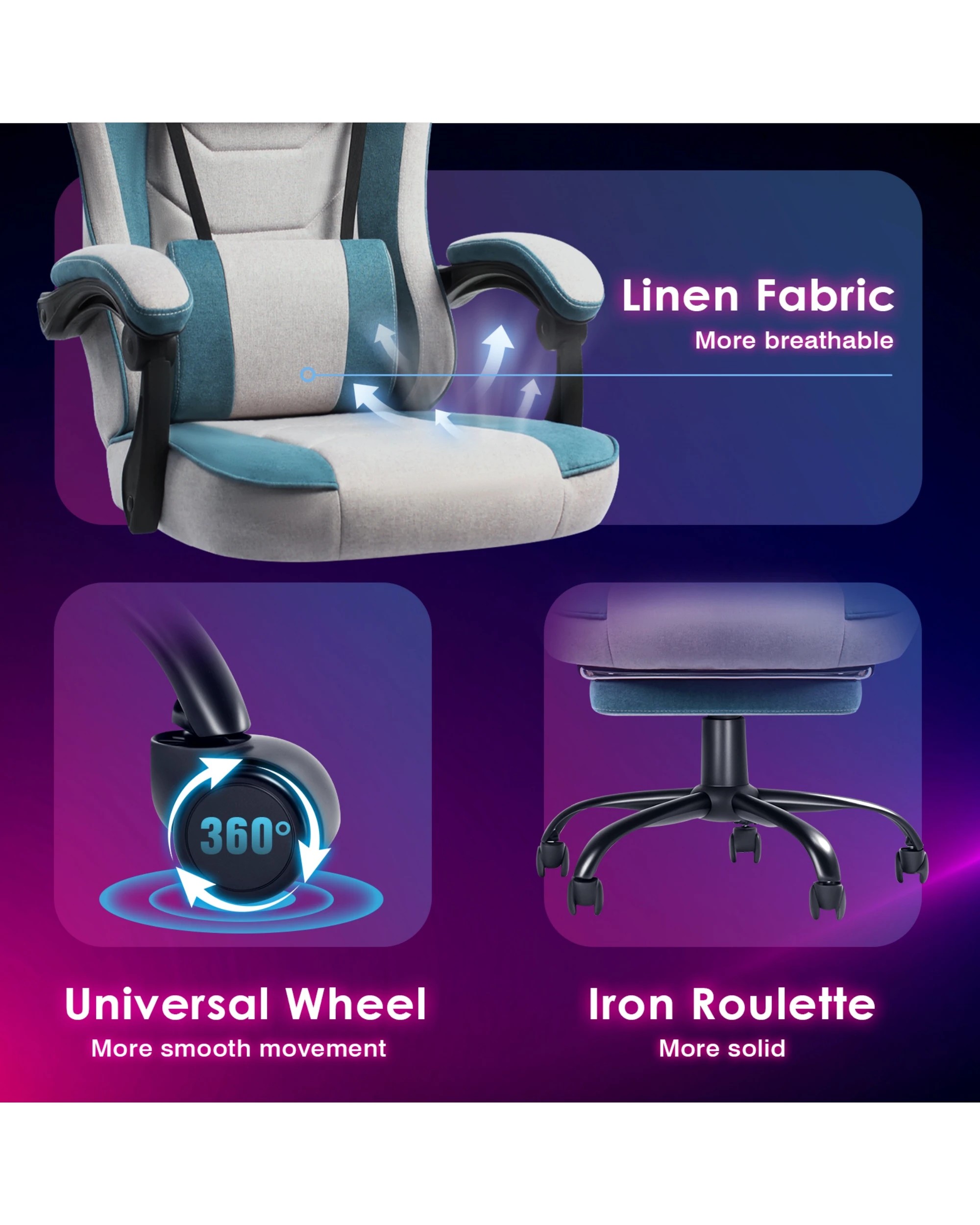 Advwin Gaming Chair With Footrest Linen Fabric Ergonomic Office Chair - Grey
