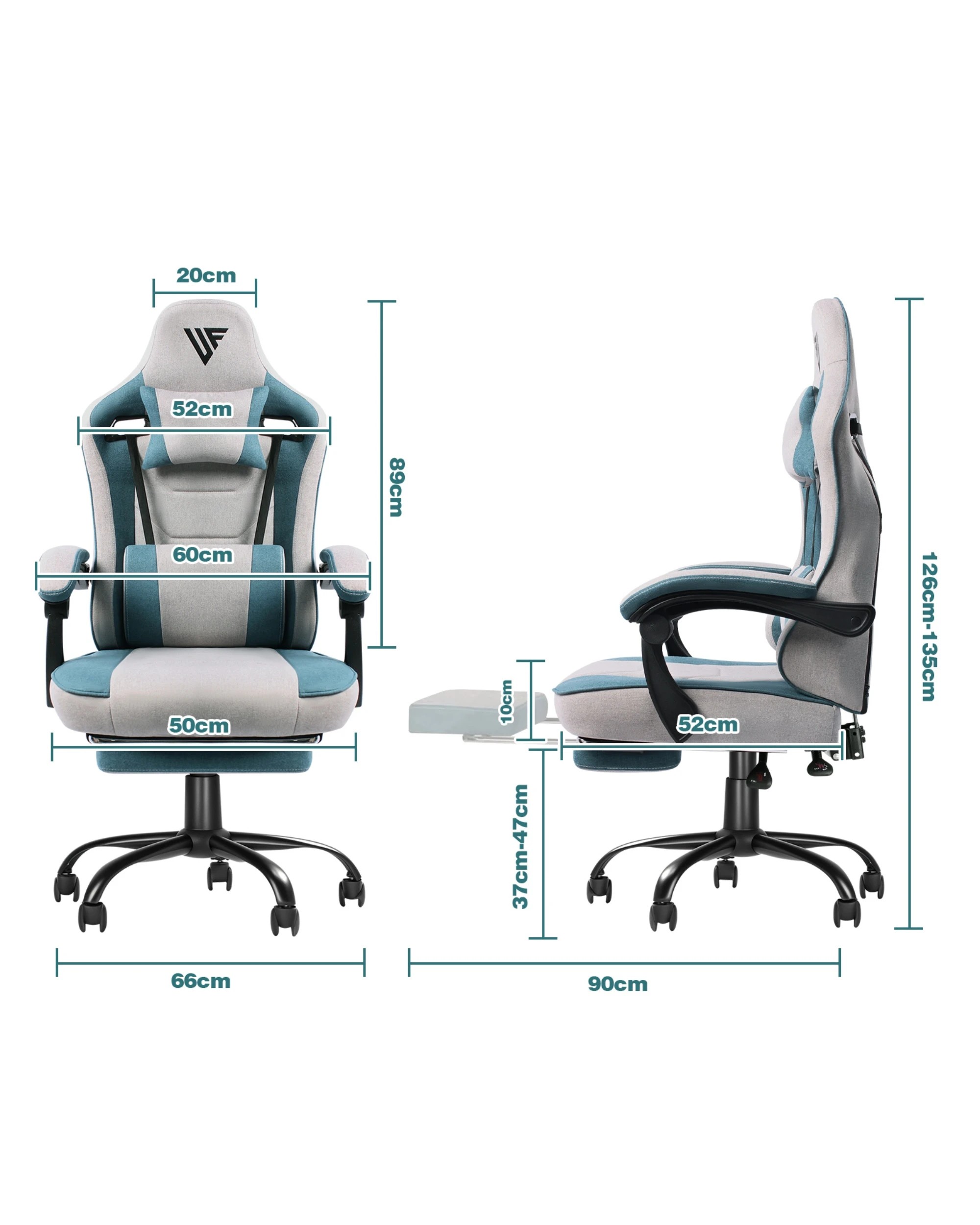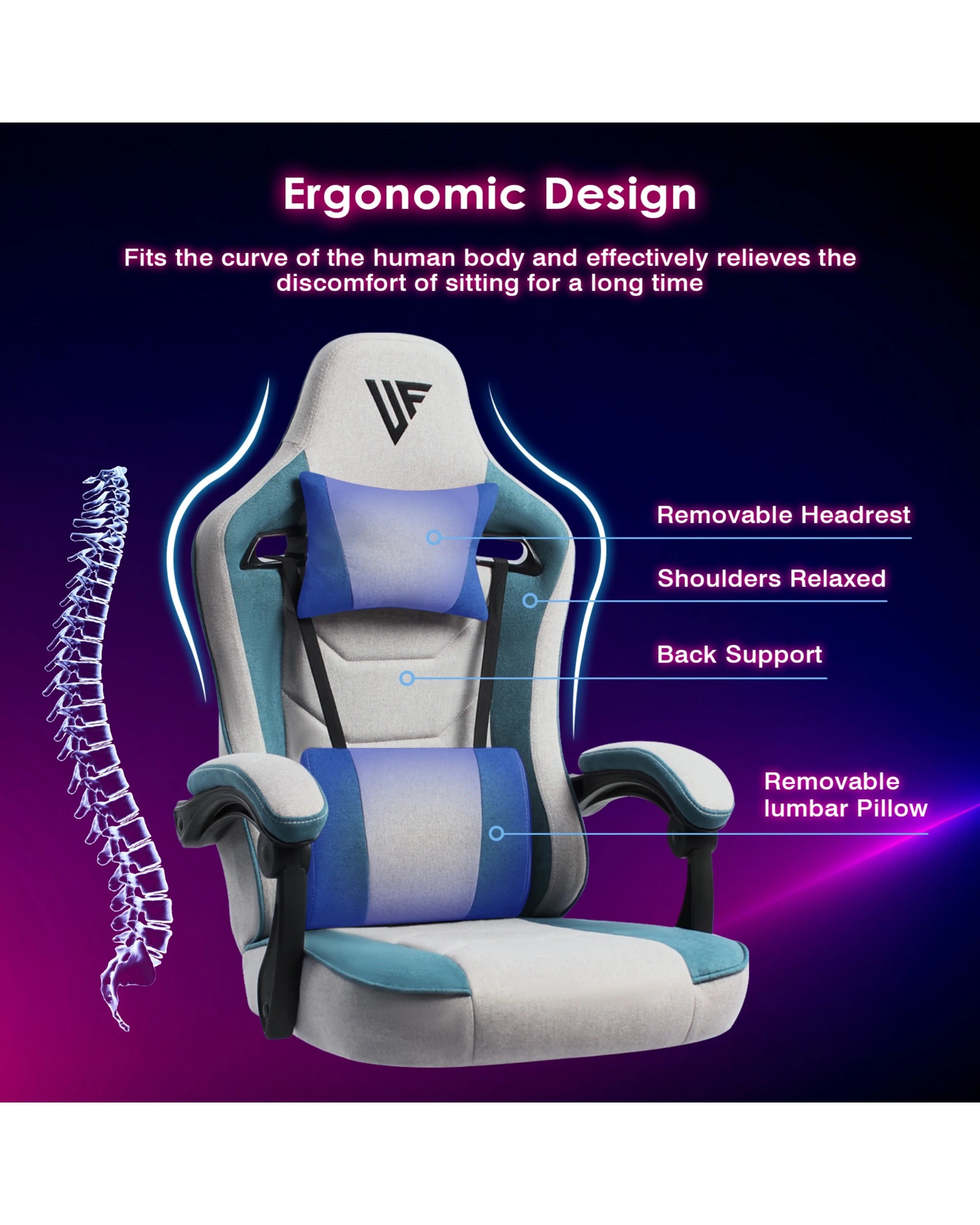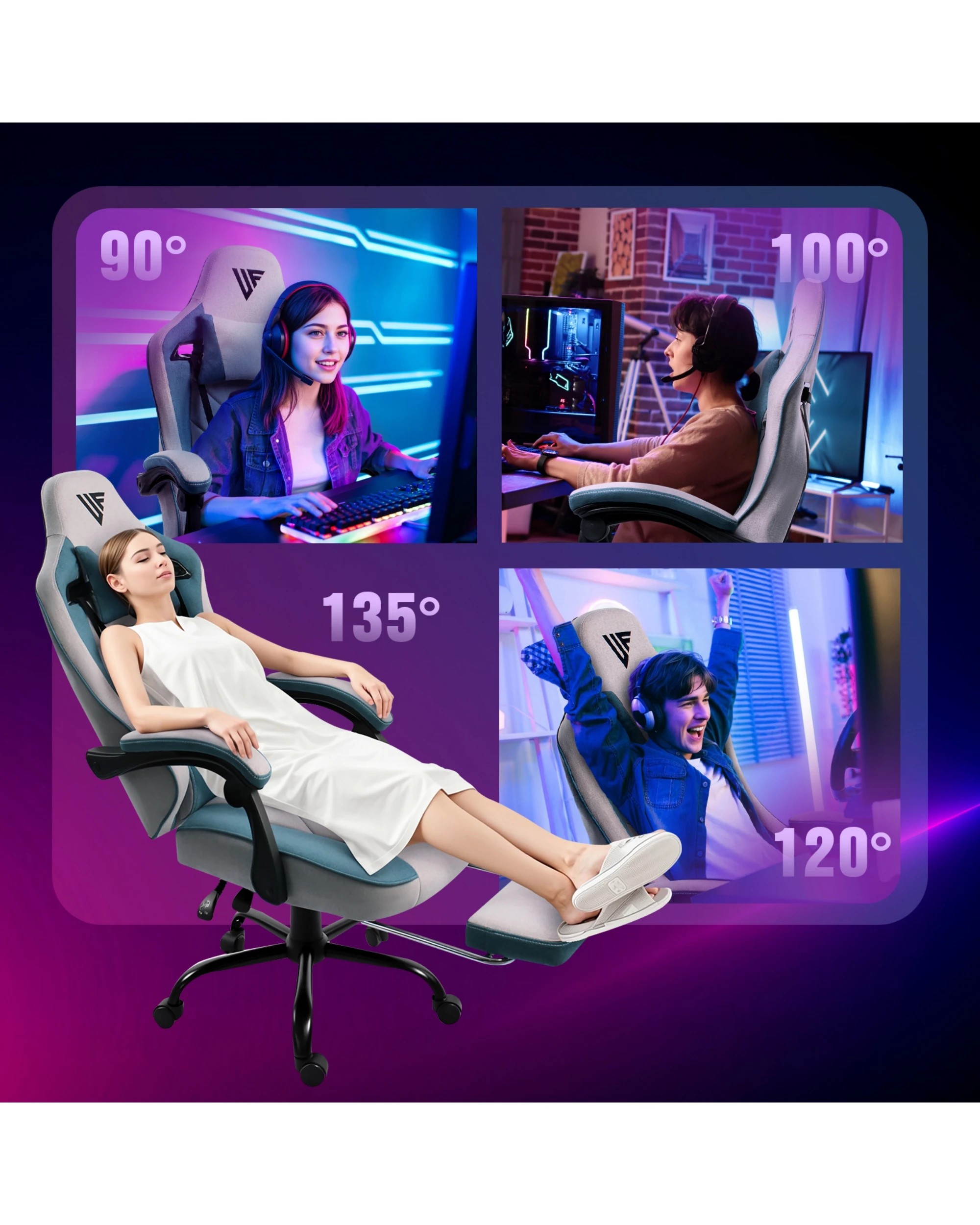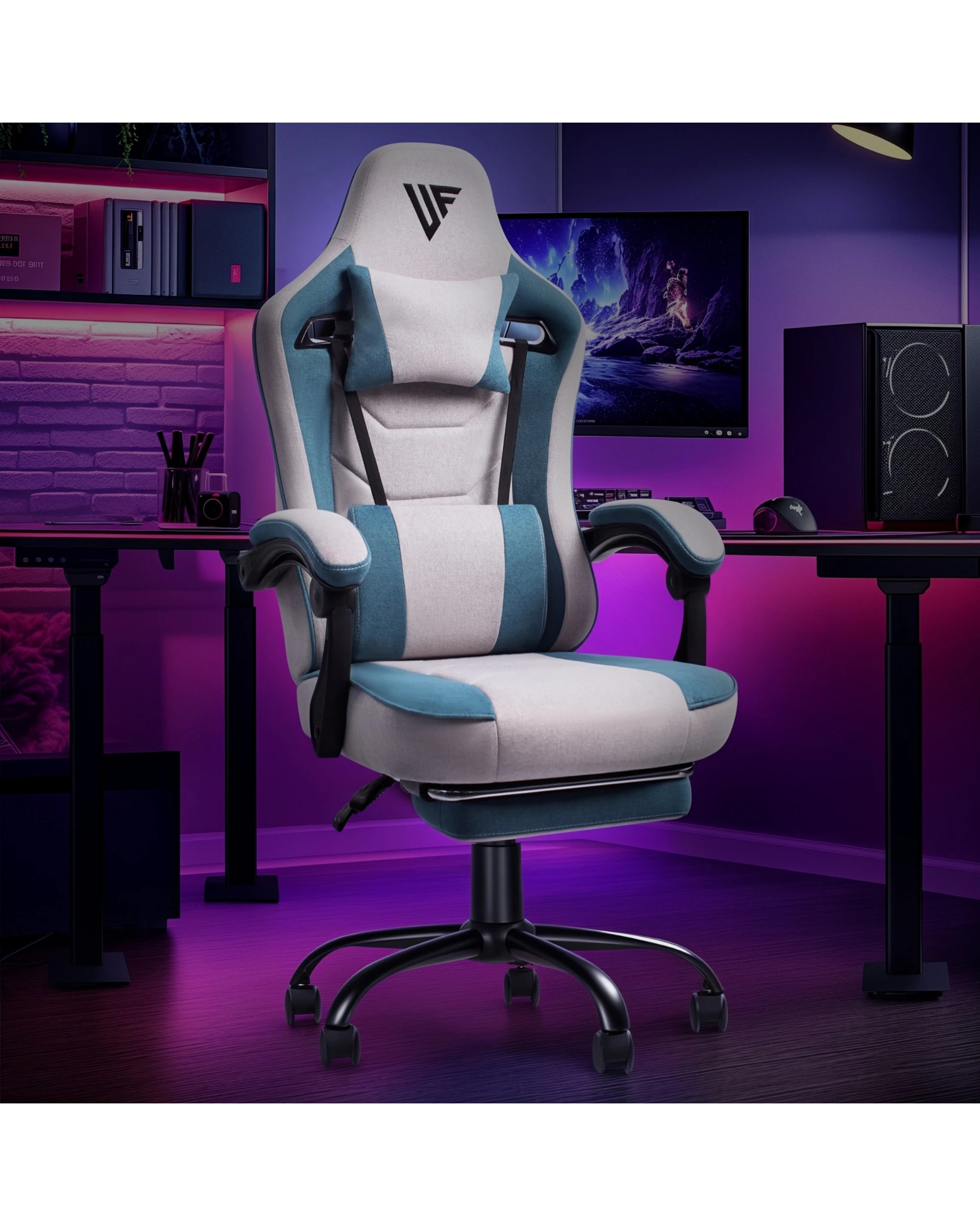 Advwin Gaming Chair With Footrest Linen Fabric Ergonomic Office Chair - Grey