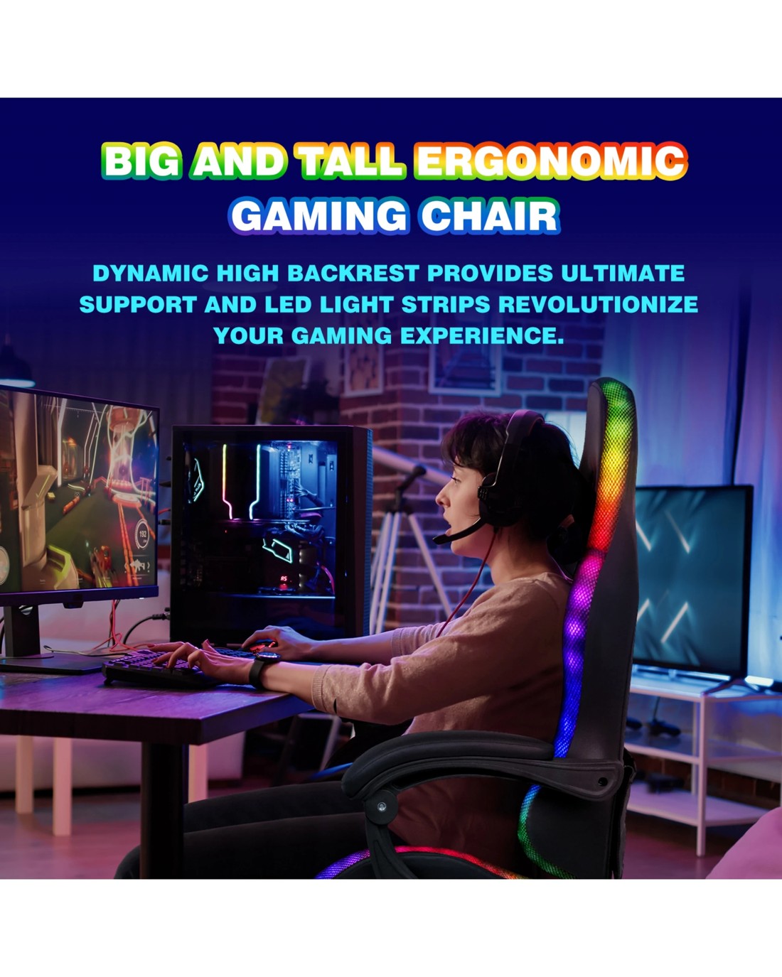 Gaming Chair With RGB LED Lights: With vibrant 12 RGB LED lights, the charming LED has 358 lighting effects and can be connected to your computer via USB to provide a comfortable experience and inspiring mood while you play games. At the same time, add a game atmosphere to your room.