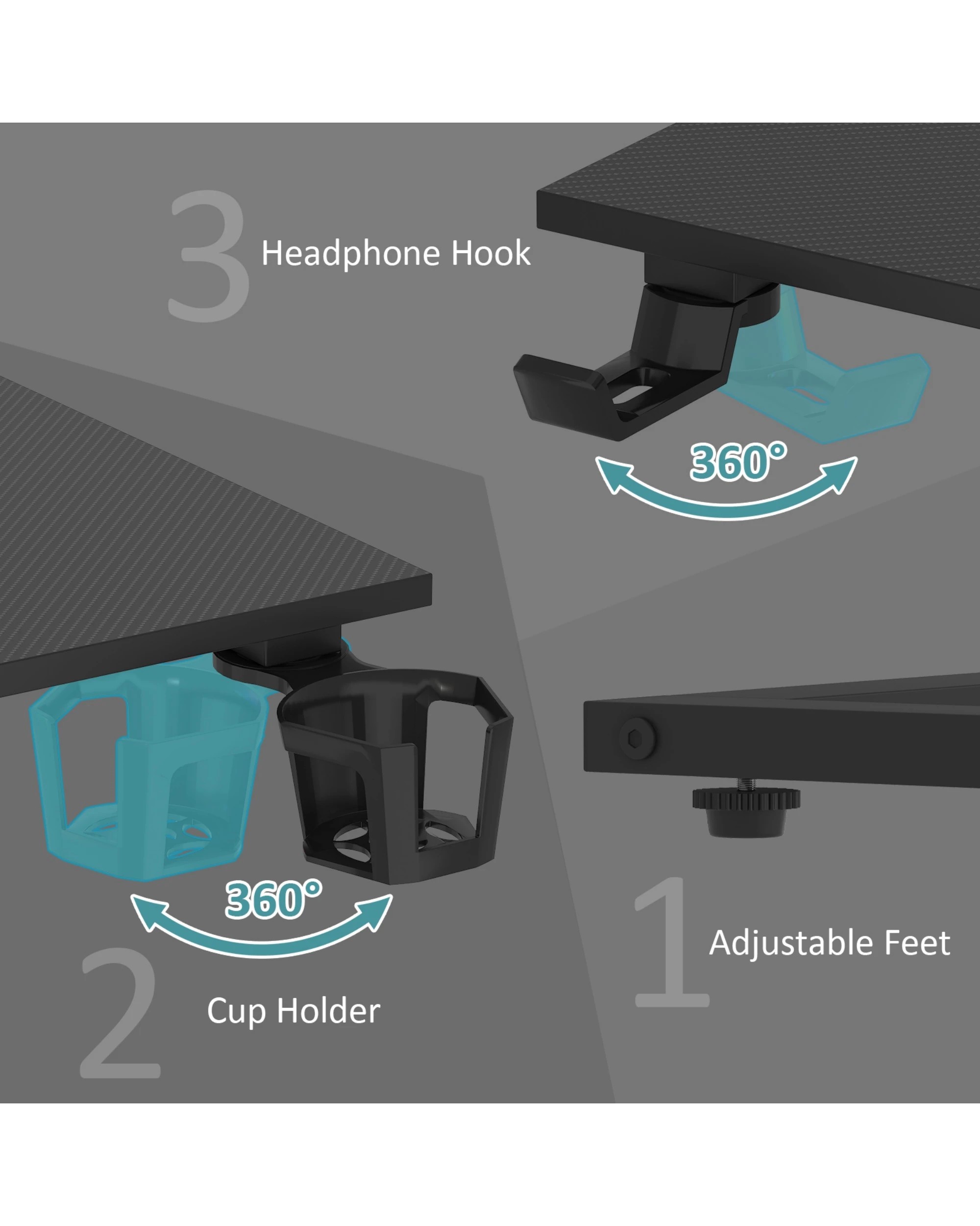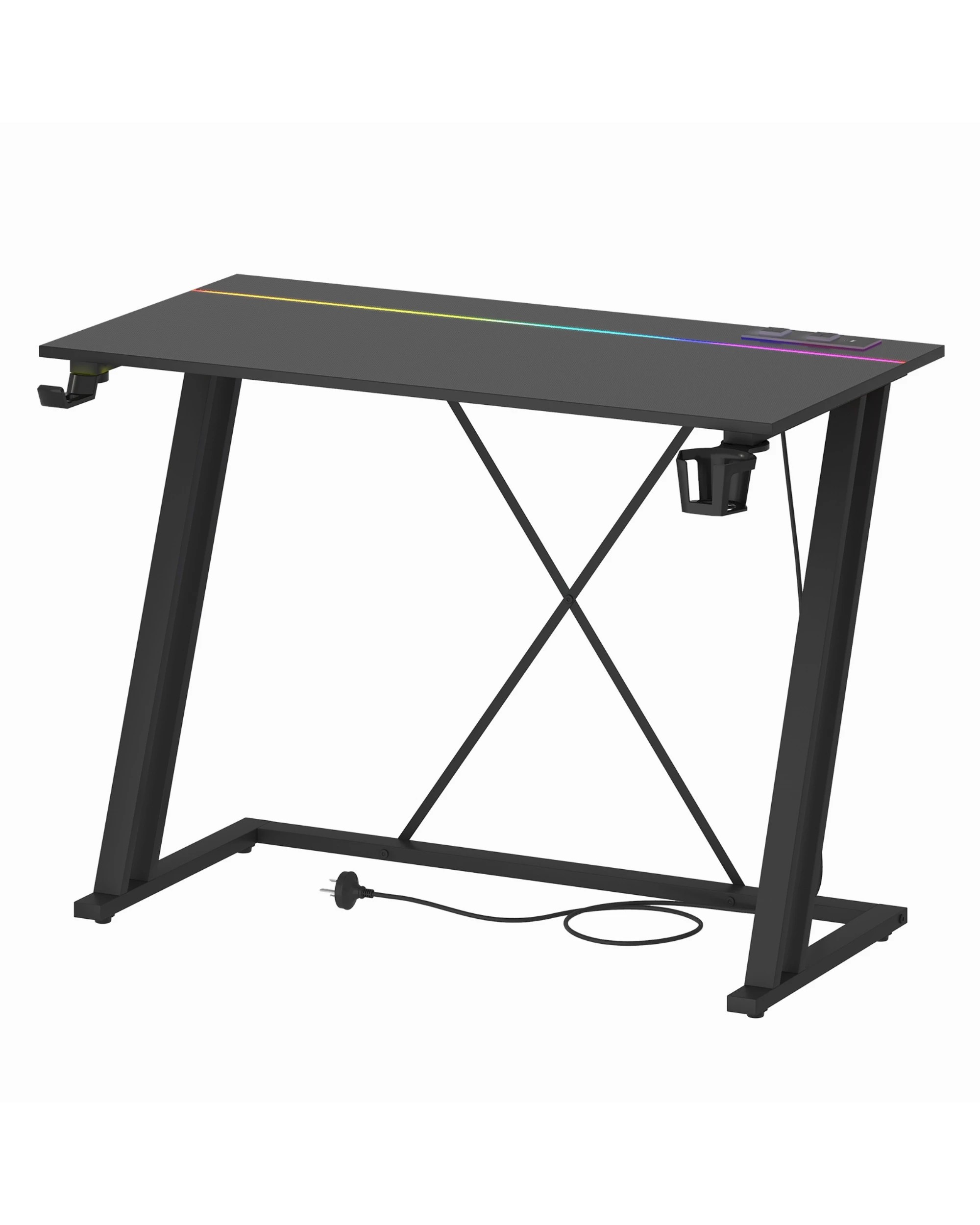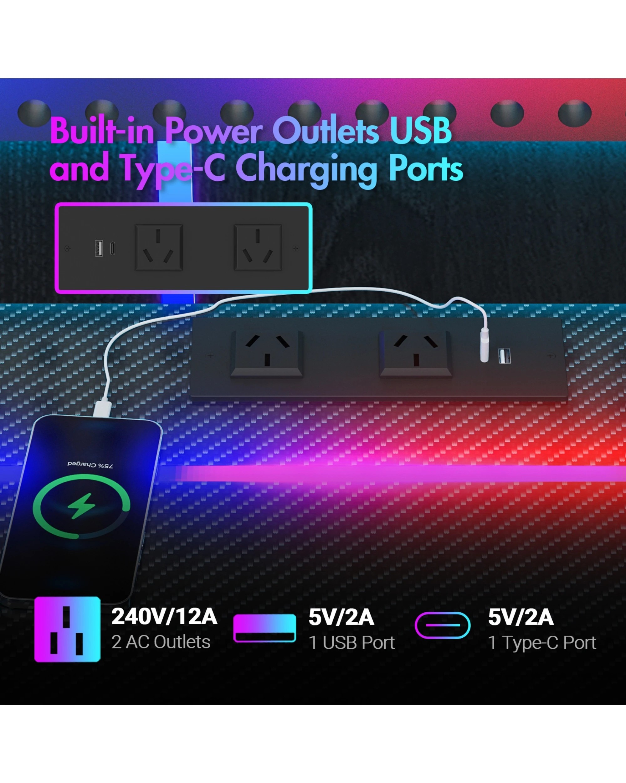 Advwin Gaming Desk Built-in Led Lights & Power Outlets 100cm Carbon Fiber Surface Computer Desk Black